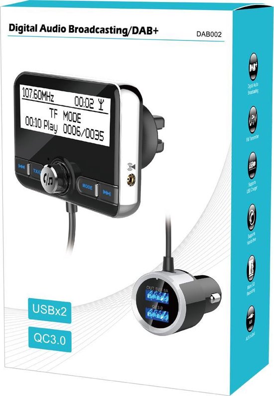 La fonction Service Tracker et la fonction Quick Scan trouvent rapidement la prochaine fréquence DAB/DAB+ libre. DAB – adaptateur Radio numérique pour voiture, 2.4... – Grandado Adaptateur radio dab Transmission sans fil pour radio DAB+/DAB vers votre amplificateur d'autoradio existant grâce à la technologie de transmission FM. Si l'article ne répond pas à vos attentes ou si vous avez des questions, n'hésitez pas à nous laisser un message via « Contacter le vendeur ». Nous offrons un service client complet. De plus, vous pouvez facilement diffuser de la musique Bluetooth à partir de votre téléphone portable, téléphoner en mains libres et répondre à un répondeur silencieux. Large Compatibilité & Service Chaleureux : LanBlu Advanced Bluetooth V4., 2 + DAB s'appaire rapidement avec presque tous les modèles de téléphones portables, tablettes et autres appareils compatibles Bluetooth sur le marché. Violet avec carte TF 64G-Appareil photo numérique Portable avec écran... Il dispose également de prises 5V 2., 1A et 5V 1., 0A pour recharger rapidement les téléphones portables, les tablettes, etc. Pure Adaptateur Dab+ de Voiture avec Musique Via Bluetooth Noir P151603 Mise à Jour Radio Numérique Voiture LanBlu Voiture Radio Dab, Adaptateur Radio Voiture Dab Plus Avec Carte TF 64G, FM Transmetteur Dab Voiture Avec Bluetooth Mains Libres, 2.4 » Adaptateur Radio Dab Récepteur Dab+ Voiture+Aux In/Out Transmetteur Bluetooth 4 Modes de Lecture & Excellente Qualité Sonore : Adaptateur bluetooth voiture LanBlu est le moyen le plus simple et le plus rapide d'installer un autoradio numérique dans votre voiture. Une Connexion Stable : L'émetteur voiture radio dab tire son énergie de l'allume-cigare de la voiture. Notre autoradio numérique DAB est équipé d'une antenne DAB 3M qui permet à l'appareil d'améliorer la réception du signal. Il recherche automatiquement et rapidement les chaînes de radio DAB disponibles à proximité pour vous offrir une qualité sonore cristalline. Transmetteur dab voiture LanBlu peut également mémoriser jusqu'à 60 de vos stations DAB préférées.