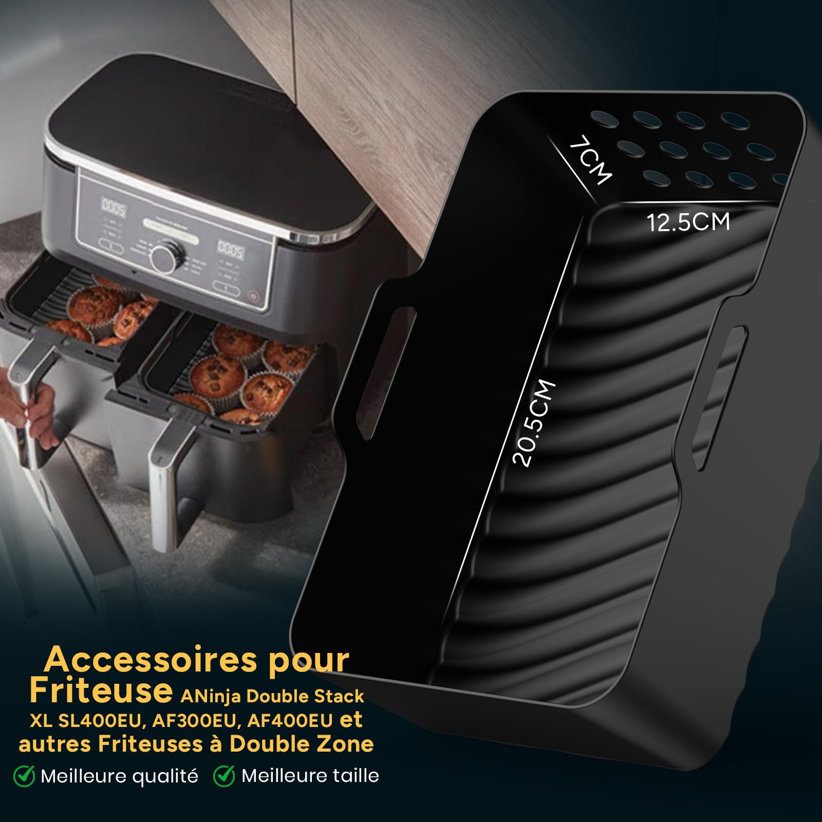 2 Paquet Moule Silicone Air Fryer pour Ninja Double Stack XL Friteuse Sans Huile SL400EU, Moule Accessoires Airfryer pour Foodi Max Dual Zone 9.5l AF400EU AF300EU 7.5L, Plat Pour Cuisine 【Matériau Premium & Polyvalence】Fabriqué en silicone de qualité alimentaire, notre Cosori moule pour friteuse à air résiste à des températures allant jusqu'à 230°C (446°F) et vous offre une utilisation sûre pour toutes vos préparations culinaires. Moules Silicone Air Fryer 2PCS Moule Silicone Air Fryer, Pliable Plat Pour Accessoires Aifryer Accessoire Friteuse Sans Huile Pliable 【Compatible avec la plupart des friteuses à double air】Moule silicone air fryer pour friteuse à air mesure 21cm x 16 cm x 7 cm cmconcerner Ninja foodi dual zone airfryer 7., 6L-10., 4L AF200EU/ AF300EU/ AF400EU/EUCP/ SL400EU/EUCP/EUWH/ AF500EU/EUCP/ Cecotec 9L/ Cosori 8., 5L 10L/ Instant Pot 8L/Duronic AF24 AF34/ Cookwise 9L/ Panana 2x4., 5L/ Cecotec 10L/ CHEFREE AFW20 8L/ Runnatal 8L/ Cecotec 9L/ Kenwood 2x4L/ Tower 9L-11L/ Emphsism 12L et plus encore 7., 6L 8L 8., 5L 9L 9., 5L 10., 4L dual air fryer Le nettoyage est simple et rapide : il suffit de le retourner et de le rincer, ou de le mettre au lave-vaisselle pour un lavage complet. 【Conception en forme de V pour l'égouttage de l'huile】La texture unique en forme de V surélevée favorise une circulation optimale de l'air et une répartition uniforme de la chaleur, garantissant une cuisson parfaite de vos aliments en moins de temps. Conçu spécialement pour la Ninja Double Stack XL 9,5L Air Fryer SL400EU. Convient également pour Foodi Max Dual Zone AF400EU AF300, Innsky IS-AF008, CHEFREE 8L AFW20, Cecotec/LLIVEKIT double Air Fryer 9L. Conseil oule Air Fryer oule Silicone Air Fryer pour Ninja Foodi AF400EU Il est équipé de poignées ergonomiques sur les côtés, spécialement conçues pour protéger vos mains de la chaleur 【Réutilisable et facile à nettoyer】Le Instant Pot platen silicone pour friteuse à air est souple et élastique, difficilement déformable. Idéal pour les passionnés de pâtisserie disposant d'un espace limité, ce moule innovant se replie entièrement à plat lorsqu'il n'est pas utilisé, pour un rangement facile.