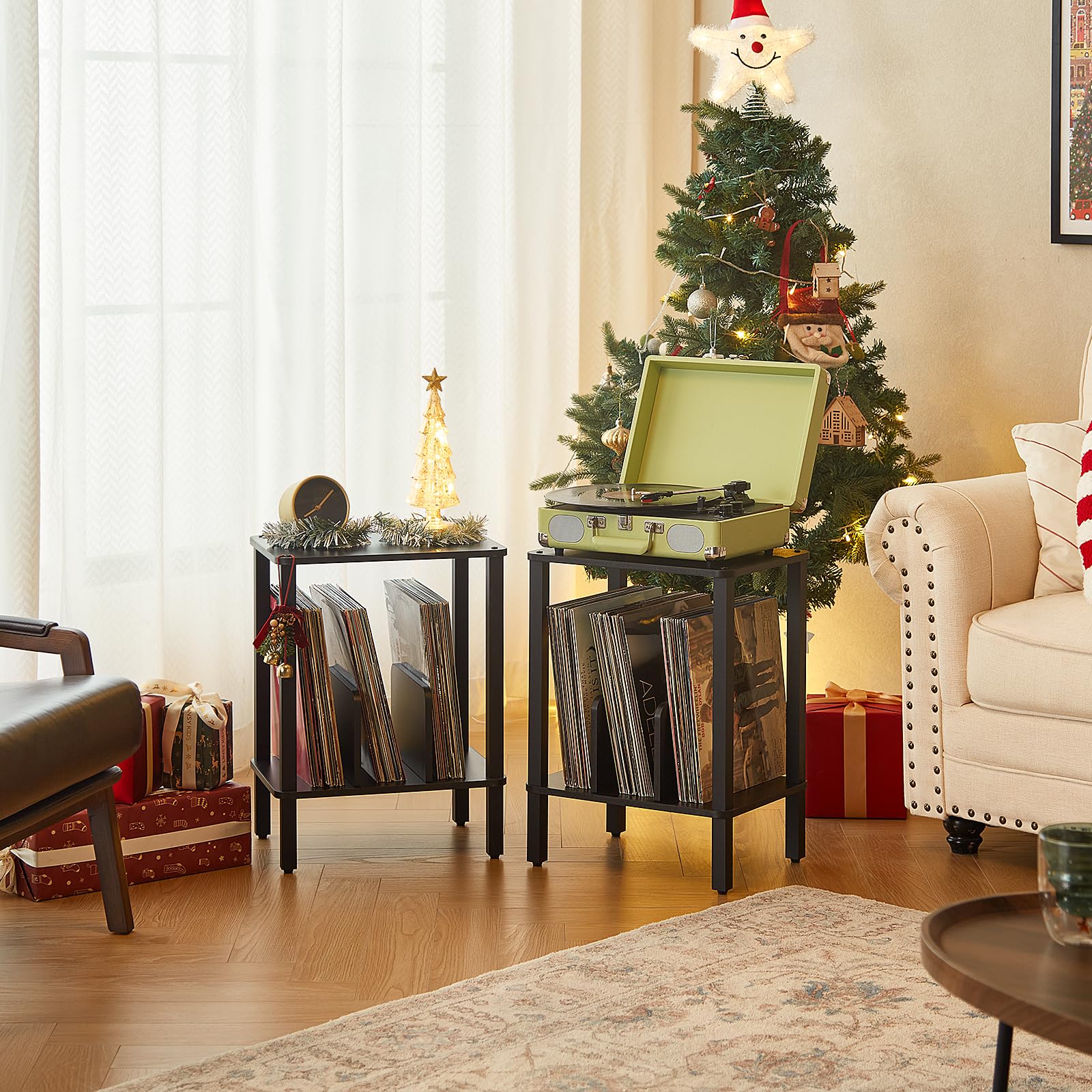 Elle peut supporter une charge maximale de 75 livres. La troisième étagère ouverte est dotée d'un support en forme de U pour faciliter l'accès et le tri des disques vinyles. Rangement à 3 Niveaux : Organisez vos CD et vinyles en toute simplicité grâce à notre support de platine à 3 niveaux, qui comprend un plateau spacieux conçu spécifiquement pour votre tourne-disque Support pour Lecteur de Disques à 5 Niveaux avec Étagère d'Affichage pour Vinyles, Table pour... Facile à Installer et à Nettoyer: Le support pour tourne-disques est livré avec des instructions claires et tout le matériel nécessaire, ce qui facilite son installation. Bikoney Rangement Disques Vinyles, Support Guitare pour Guitare Vous pouvez rapidement commencer à utiliser et à profiter de votre tourne-disque sans aucun problème. La surface lisse ne se laisse pas facilement tacher par la poussière et la saleté, un simple coup de chiffon suffit à la rendre propre et nette. Platine Vinyle MAWEW Support Pour Tourne-disque, Support Pour Tourne-disque, Table De Meuble Vinyle 3 Niveaux Elle est également équipée d'un fil de fer latéral pour éviter que les disques vinyles ne glissent. Conception à 3 Niveaux: Dimensions - 30 x 40 x 75 cm. Construction Durable: Fabriquée en bois robuste et en fer épais, notre table pour tourne-disques est équipée de pieds antidérapants qui garantissent une utilisation durable.