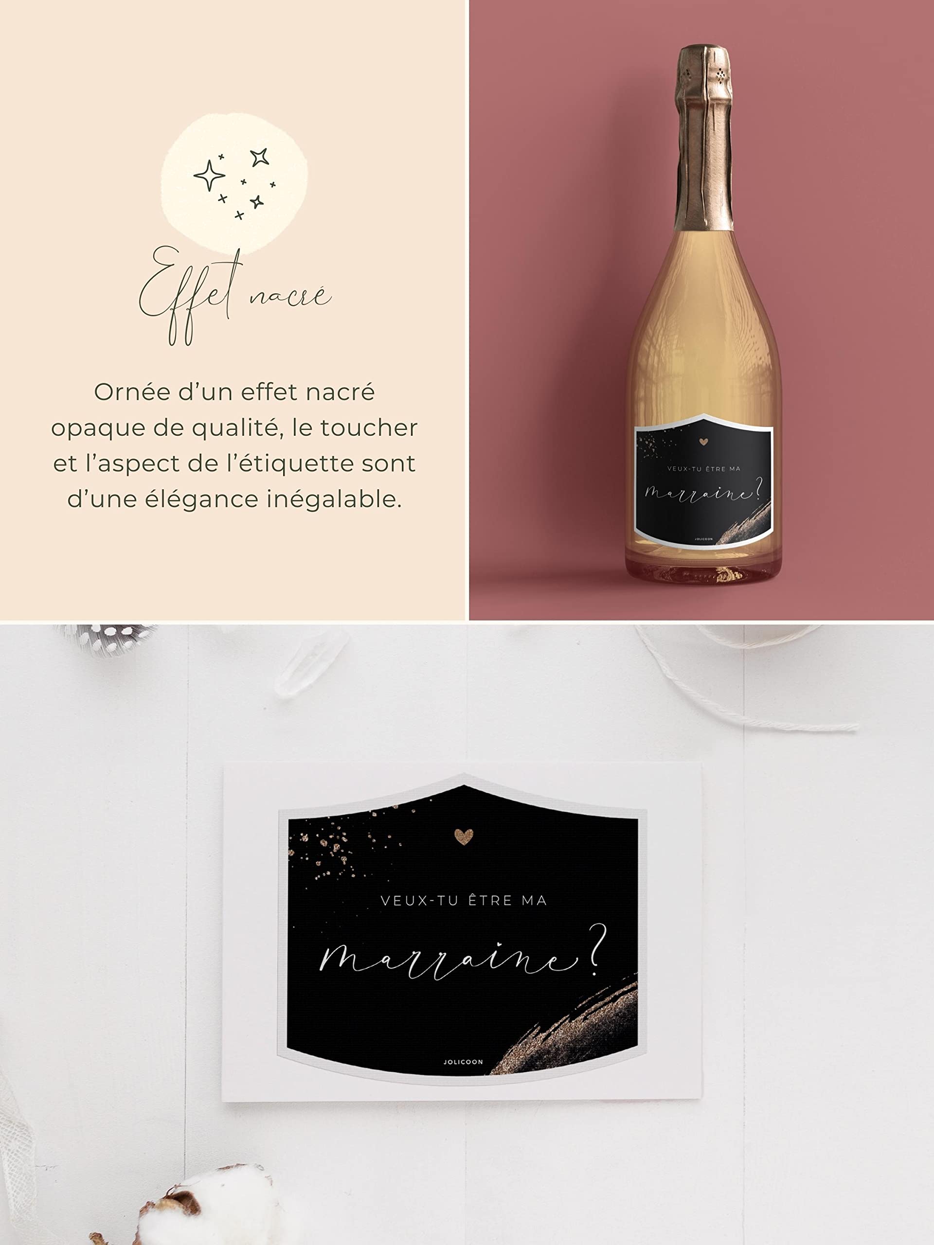 Voici une belle idée simple et originale pour annoncer votre grossesse et demander aux personnes de votre choix de devenir la marraine et le parrain de votre futur bébé. Puzzle magnetque demande marrane | Demande marrane, Marrane et Demande parran marrane Les étiquettes s'adaptent à de nombreuses formes de bouteilles (veuillez à tester le rendu sur la surface de la bouteille avant de la coller, pour la positionner correctement sans pli). EFFET DE SURPRISE : Associer une bouteille de vin, de jus, une bière artisanale ou autre, avec une belle étiquette personnalisée. Nos créations sont uniques (design & modèle protégé). étiquette Champagne Baptême Naissance Coffret Veux Tu être Ma Marraine ? Fleur De Naissance – A Mes Copines Demande Parrain Marraine Les écritures sont réalisées en dorure pour un magnifique rendu éclatant et élégant. Le rendu est encore plus beau sur une bouteille de vin rouge ou avec une bouteille de champagne, avec l'effet ton sur ton du noir de l'étiquette et son inscription en dorure à chaud. UNE ENTREPRISE FRANÇAISE : Te Whaka est une petite entreprise française, basée en Rhône-Alpes. La bouteille n'est pas fournie. 2 stickers bouteille Veux-tu être mon parrain / ma marraine - 8 x 11 cm - Collection Baptême Blanc et Or - Couleur au choix - Jour de Fête - Parrains & Marraines - BAPTEME ET COMMUNION Chaque étiquette mesure 9,5 cm de haut * 8 cm de large. Annonce grossesse orgnale: badges épngles, magnets frgo, porte-clés, mrors de poche et...
