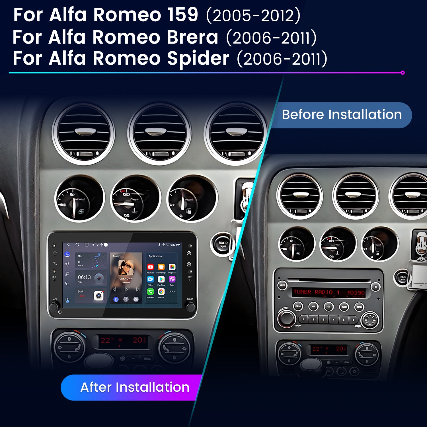 ASF, TS, TP, 3GP, MPG etc. Vous pouvez télécharger n'importe quelle application depuis le Google App Store. Profitez du confort et du plaisir de voyager. Pack jantes Alfa romeo pour Giulia Giulietta Stelvio Brera 159 Noir... 【Autoradio pour Alfa Romeo Spider/159 / Brera /159 Sportwagon】Cet autoradio est pour Alfa Romeo Spider (à partir de 2006); Alfa Romeo 159 (à partir de 2005); Alfa Romeo Brera (à partir de 2006); Alfa Romeo 159 Sportwagon (à partir de 2005). Vous pouvez télécharger l'annuaire téléphonique du téléphone mobile sur cette radio. 【Fonction Bluetooth】 Répondre/passer des appels est mains libres et sans distraction. Lien miroir Prend en charge la mise en miroir de l'écran des téléphones Apple et des smartphones Android Alors continuez à écouter de la musique sur votre application préférée. Prend en charge le Wi-Fi Facile à connecter au WiFi/hotspot de votre téléphone, prend en charge les applications de téléchargement que vous aimez sur Android Market. Il vous suffit de connecter votre téléphone à la radio via un câble WiFi/Bluetooth/USB pour accéder aux fonctions de votre téléphone. 【Commande au volant】 Cet autoradio est compatible avec toutes les fonctions de commande au volant d'usine. Alfa Romeo Brera CarPlay / Android Auto nachrüsten | alle Baureihen Lorsque vous engagez la marche arrière, l'écran passe automatiquement à l'interface de marche arrière. Lecture via la liste de chansons possible Format vidéo - Prend en charge AVI (H. Vous pouvez définir différents effets sonores selon vos préférences et profiter de différents styles de musique à tout moment et en tout lieu. Capturez chaque image nette, claire et éclatante sous un large angle de vision de 178°. Autoradio Android 14 Spider 159 Brera Für Alfa Romeo Brera 159 Spider 939 6.2" Touchscreen Android Autoradio GPS NAVI Radio 2Go RAM 32Go ROM Commande au volant Cet autoradio de 9 pouces est compatible avec les commandes au volant d'usine. Naviguez, passez des appels et ouvrez votre navigateur ou un autre menu en même temps. Affichage en écran partagé Vous pouvez faire deux choses en même temps. Profitez du confort et du plaisir de voyager., Veuillez noter: 1., Si vous utilisez Android Auto sans fil, vous devez définir la bande AP du WiFi (hotspot) de votre téléphone sur 5 GHz., 2., La radio ne se connecte pas au WiFi pour surfer après avoir connecté Carplay sans fil ou Android Auto sans fil, ce qui est normal. Il vous suffit d'utiliser le WIFI/Bluetooth pour vous connecter à votre smartphone et accéder aux fonctions de votre téléphone. Prend en charge la caméra de recul Ce système vidéo de voiture avec caméra de recul affiche les angles morts problématiques sur un moniteur afin que vous puissiez repérer les dangers comme les animaux domestiques, les enfants qui jouent ou les boîtes aux lettres lors de la marche arrière. Navigation GPS Vous pouvez accéder à diverses cartes en ligne et également utiliser la carte hors ligne que nous avons préinstallée. DSP intégré La radio Android dispose d'un processeur de signal numérique de pointe. Lorsque vous mettez la voiture en marche arrière, l'affichage passe automatiquement à l'interface de marche arrière. = 30 formats, lire directement la vidéo Internet (pendant le téléchargement) Sortie audio – Deux (AUX R OUT, AUX L OUT) Sortie haut-parleur surround – 4 x 50 W Sortie caisson de basses – ON 264, DIVX, XVID), RM, RMVB, MKV (H., 264, DIVX, XVID)., WMA, MOV, MP4 (H., 264, MPEG, DIVX, XVID)., DAT (format VCD)., VOB (format DVD)., PMP, MPEG, MPG., FLV (H., 263, H., 264). Compatible avec Apple CarPlay/Android Auto Cette radio Android 13 prend en charge Carplay sans fil et Android Auto. (Attention : ne prend pas en charge la caméra de recul d'usine).