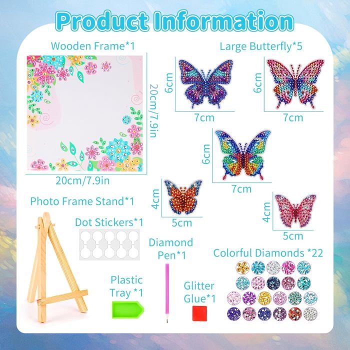 Décoratif et cadeau : l'œuvre d'art finie est idéale pour décorer les chambres d'enfants ou comme cadeau spécial pour les anniversaires, Noël ou d'autres occasions Effet magique 5D avec ailes mobiles : les enfants créent une œuvre d'art scintillante avec des ailes flexibles qui vibrent doucement au toucher, comme vivant Parfait pour le temps parent-enfant : le bricolage ensemble crée de beaux souvenirs et renforce le lien entre parents et enfants Bricolage Enfant Avec Toile Bois Pearoft Bricolage Fille 7, 8, 9, 10 Ans, Cadeaux Pour Filles De 6 à 12 Ans, Peinture Diamant A5, Carnet De Notes, Kit De Bricolage, Jouets Pour Enfants à Partir De 5, 7, 9, 11 Ans, Cadeau Diamant 5D Papillon Ailes Mobiles Jeux - Jouets - Découvrez notre offre Peinture diamant pour enfants - Papillon - Cadeau pour filles de 6, 7, 8, 9, 10, 11 ans - Bricolage - Papillons avec cadre en bois Les Cadeaux de Noël 2022 pour filles de 4, 5, 6 ans Kit de peinture diamant facile pour enfants avec cadre en bois, cadeau