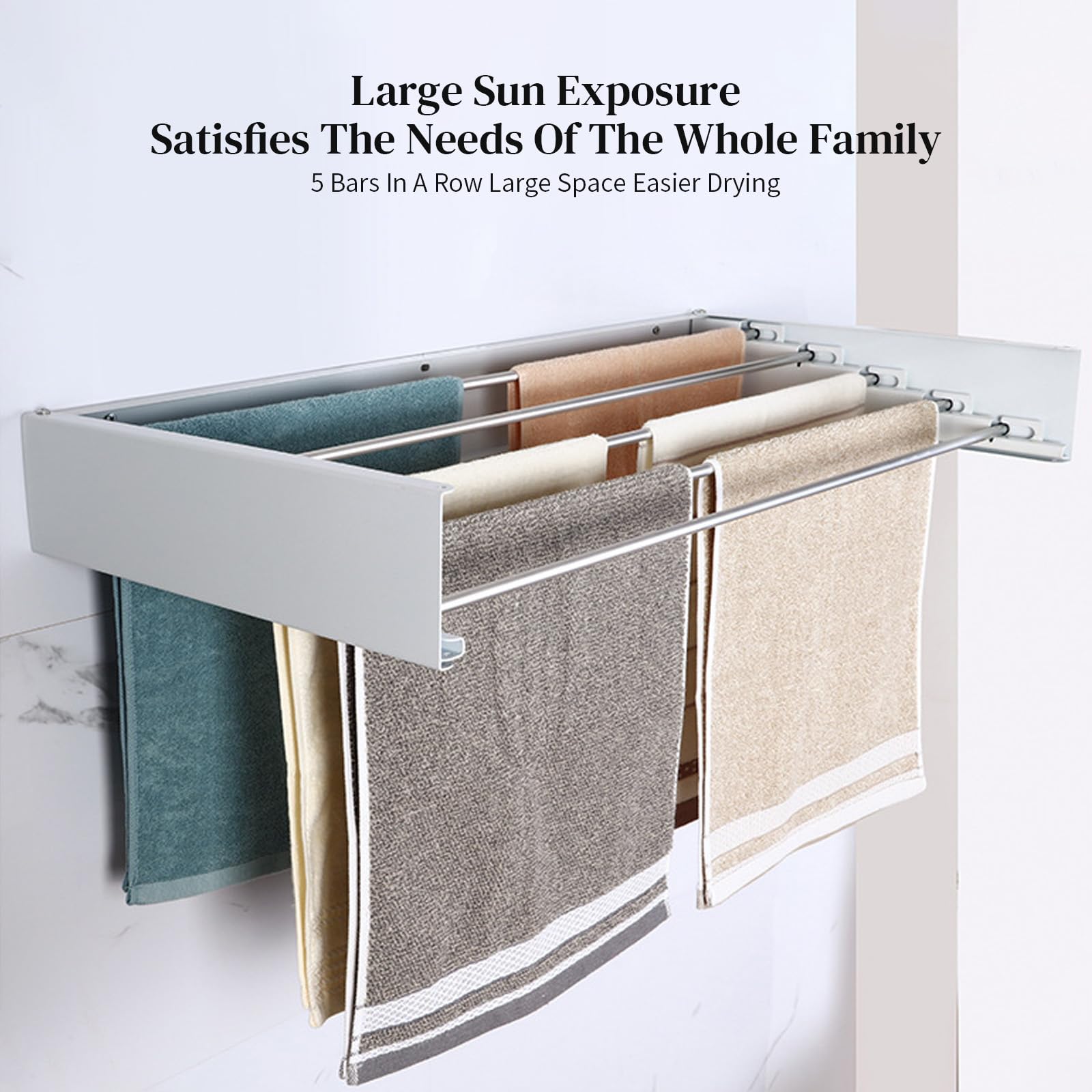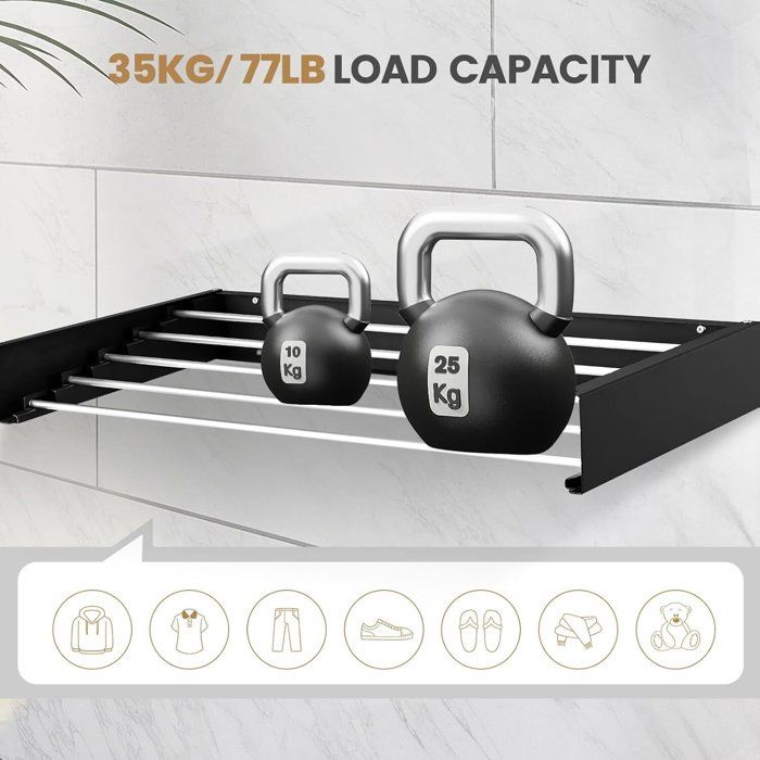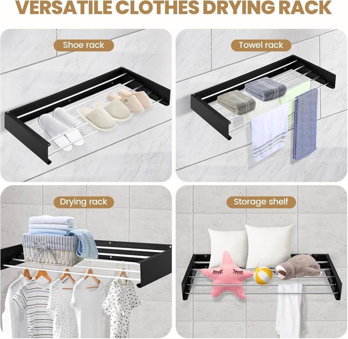 Avec ses 5 tiges en acier inoxydable et ses deux bras latéraux, il maximise la capacité de séchage tout en préservant l'espace - parfait pour les petites maisons ! L'étendoir à linge mural est un allié précieux pour optimiser l'espace dans votre maison. Que vous disposiez d'une petite salle de bains, d'une buanderie exiguë ou d'un balcon compact, l'étendoir mural vous permet de sécher votre linge efficacement sans encombrer votre espace de vie 6 Tiges Solides : Offre de l’espace pour sécher vêtements, serviettes, linge de bain – supporte jusqu’à 30kg (100cm) ou 25kg (80cm). Sa finition blanche élégante s'intègre parfaitement dans n'importe quelle pièce, tandis que le séchage à l'air libre des vêtements permet de conserver leur fraîcheur, d'économiser de l'énergie et de réduire l'empreinte écologique. 【Installation Rapide et Facile】Pré-assemblé pour plus de commodité, cet séchoir à linge compact pour appartements comprend tout le matériel nécessaire pour un montage mural simple. 【Robuste et Durable】Le cadre est en acier au carbone de 1., 4 mm d'épaisseur et les 5 tiges sont en acier inoxydable de première qualité, ce qui équivaut à 400CM de fil de suspension linéaire et peut supporter un poids maximum de 25 kg. Idéal pour les serviettes, les jeans et le linge volumineux, c'est une solution robuste mais légère pour les besoins de séchage quotidiens. Sèche-Linge Mural Pliable - CAPSA HOME Installation Sans Peine : Kit d’installation complet (vis, chevilles, clé) inclus. Étendoir à linge mural - 80 cm - Étendoir à linge pliable à 5 étendoir Escamotable Pour Petit Balcon OUUTMEE 80CM Séchoir à Linge Mural, Étendoir à Linge Pliable Pour Intérieur Et Extérieur, Rétractable Etendoir Linge Mural Avec 5 Tiges, Economiseur D'Espace Design (Noir Séchoir Balcon Intérieur Extérieur Dimensions dépliées: 80 x 40 x 10CM. Suivez les 6 étapes et c’est prêt – pas de bricolage complexe. Espace Supplémentaire Invisible Ces barres se déploient latéralement, offrant un rangement “caché” pour cintres ou petits linge – parfaits pour sous-vêtements, écharpes ou chaussettes. Pliable & Rétractable+Economie d’Espace Se replie complètement contre le mur – parfait pour petits espaces (salon, balcon, entrée). 【Peu Encombrant et Compact】Cet étendoir à linge mural se déploie sur 80CM de long, offrant ainsi un vaste espace de séchage, tout en se repliant à plat contre le mur (seulement 2., 5CM d'épaisseur) lorsqu'il n'est pas utilisé.