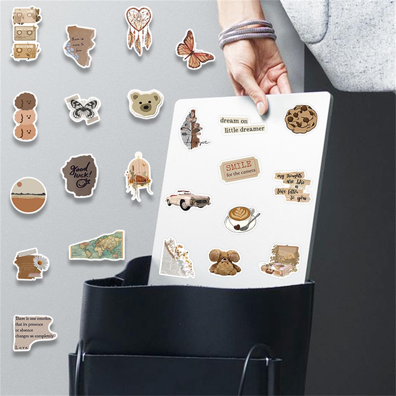 Embellissez vos cartes, vos rangements pour la maison et vos agendas avec les stickers de scrapbooking de nos merceries. Colorés et originaux, les autocollants sont les indispensables des amateurs de loisirs créatifs que vous êtes FACILES À UTILISER : Décollez et collez simplement sur la surface d'un livre ou d'un album. Décoration Journal Ordinateur STICKER SCRAPBOOKING,10--Autocollants Vintage Pour Journal Fleur Plante Stickers Aesthetic JEYORZY 120 Pcs Stickers Kindle,Stickers Scrapbooking,Autocollant Scrapbooking, Autocollants Vintage, Autocollant AdhéSif pour Diy Journal Scrapbooking,Ordinateur Portable, Bouteille D'Eau, Valise NOMBREUSES UTILISATIONS : Nos stickers pour kindle conviennent à la décoration d'albums, de cartes, de carnets de voyage, d'albums photo, de magazines d'art, de collages, de découpages papier, de magazines, d'agendas, de carnets, d'emballages cadeaux et autres objets, parfaits pour embellir vos créations. La quantité est suffisante pour répondre à tous vos besoins de décoration. Autocollants Boho 100 Pièces Stickers Bohèe Autocollants Clipart... Vintage Aufkleber 120 Stück JEYORZY Aesthetic Sticker Set - 120 Stück Vintage Aufkleber Für Journal & DIY Vintage Aufkleber Set Épais et durables, nos stickers offrent une impression haute définition, des couleurs vives et nettes, des motifs clairs, une résistance à la décoloration, une résistance aux rayures, une imperméabilité et une durabilité accrues. Ces autocollants pour ordinateur portable offrent une bonne adhérence, sont faciles à décoller et à coller, imperméables et résistants au soleil, ne laissent aucune trace après le déchirement. MATÉRIAU RAFFINÉ : Ces magnifiques autocollants sont fabriqués en vinyle de haute qualité avec un support autocollant.