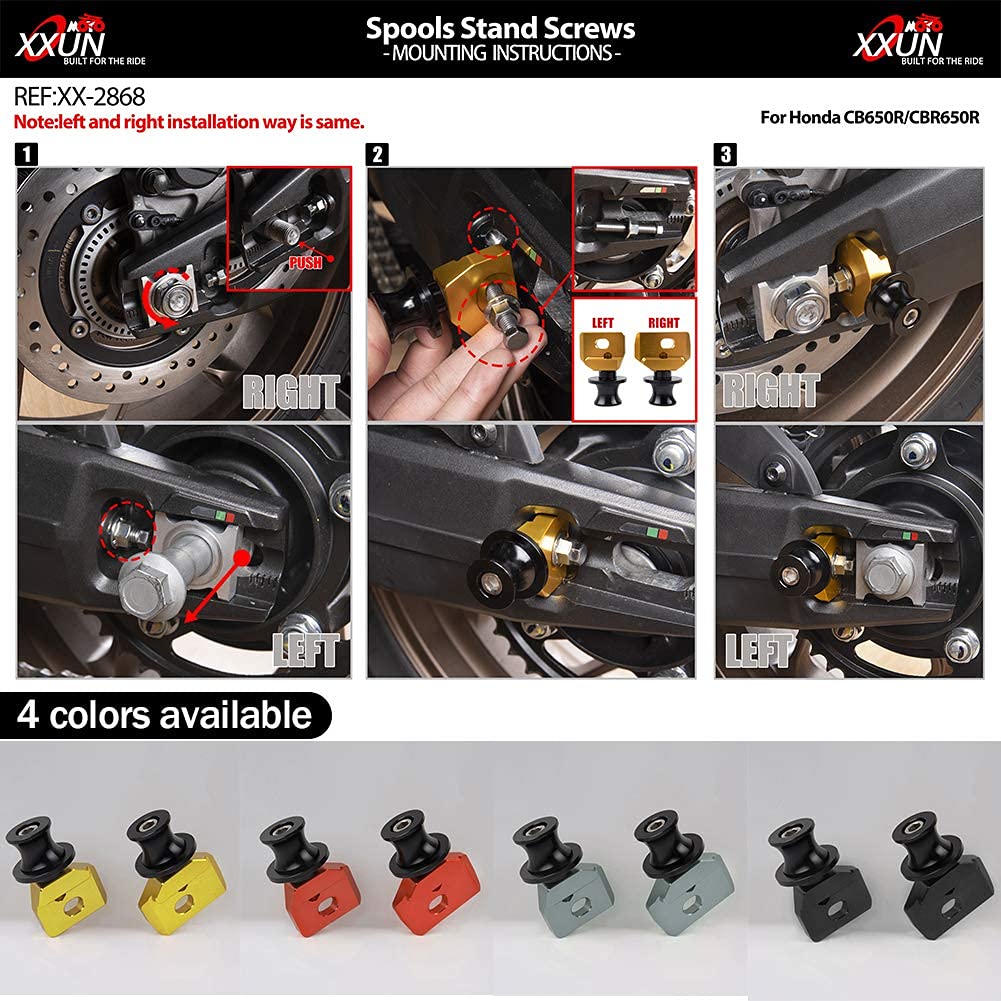 Matériau : Construit en aluminium CNC de qualité, traitement d'anodisation de surface, pas facile à décolorer et à rouiller après une longue période d'utilisation. Protection Roue Moto CB CBR 650 Lorababer Moto Roue Arrière Fourche Essieu Curseur Bras Oscillant Bobines Support Pick Up Compatible Avec H-Onda CB650R CBR650R CB 650R CBR 650R CB 650 R CBR 650 R 2019 2020 Accessoires (Titane Curseur Bras Oscillant Aluminium Cela peut améliorer le look de votre moto. Traitement d'anodisation de surface, pas facile à estomper, pas de rouille après une longue période d'utilisation. Le plus important pour nous est que vous aimiez votre achat. Bras oscillant bobines curseur pour Aprilia RSV4 RSV4R RSV1000/R RSV... Elle est utilisée pour remplacer ou réparer des problèmes défectueux et défectueux. Quantité : 1 paire de curseurs d'axe de fourche de roue arrière pour CB 650 R/CBR 650R 14 15 16 17 18 19 20 21 22 23., (Tout le matériel de Compatibilité : nécessaire est inclus. Fonction : ces bobines/curseurs/bobines peuvent protéger efficacement votre bras oscillant d'un basculement inévitable ou vous devez placer votre vélo sur un support. Ce n'est pas une pièce d'origine du fabricant., ) Si vous recevez un article endommagé, défectueux, non conforme à la description ou erroné, veuillez nous en informer. Matériau : Le kit est fabriqué en aluminium de haute qualité, usiné CNC. Vvikizy Moto Fourche Arrière Essieu Curseur Roue Crash Protecteur Cnc