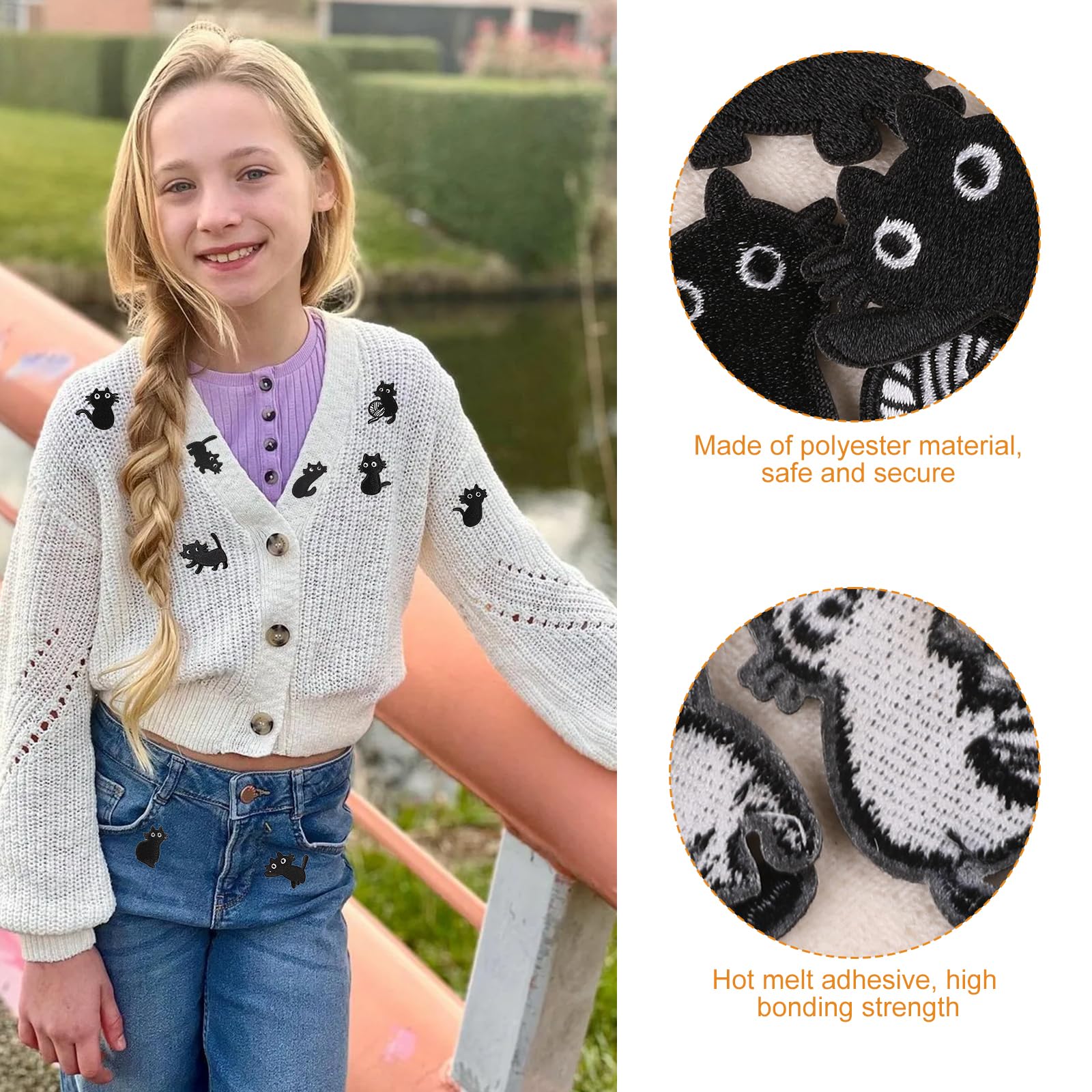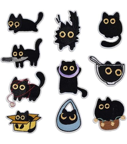 🐈Matériaux compatibles : Convient à une variété de tissus tels que le coton, le denim, la toile, etc. Patch à broder noir et blanc chat mignon animal chat broderie vêtements patch à repasser ou à coudre patch motif punk applique accessoire pour vêtements sac veste bricolage Facile à utiliser. Pour plus de stabilité, vous pouvez coudre le renfort des bords., Ensemble de broderie exquis : contient 10 jolis patchs en forme de chat noir. Le motif vif et tridimensionnel est fabriqué avec une broderie de serviette et est adapté pour décorer des vêtements, des sacs à dos ou des travaux manuels 🐈Plusieurs choix : Chaque ensemble contient des motifs de chat noir de différentes formes, au style ludique, qui peuvent masquer les dommages ou simplement embellir, donnant un aspect neuf aux vieux vêtements. Le dos du patch est doté de colle thermofusible, ce qui facilite le repassage ou la couture, et son utilisation est simple. Patchs yeux de chat moral brodés coudre sur des étiquettes emblème de... 🐈Cadeau attentionné : Idéal pour les bricoleurs souhaitant transformer leurs vêtements, ce cadeau créatif est idéal pour les amoureux des chats, comme cadeau de Noël ou pour les promotions en animalerie, apportant chaleur et plaisir. 🐈Durable et facile à utiliser : Fabriqué en polyester de haute qualité, finition soignée, texture épaisse, résistant aux dommages et à la décoloration, durable. Vetement Chat Écusson Black Cat Society, Patch Thermocollants Brodé Sur Fer Ou à Coudre, Customiser Vêtements Et Accessoires - France Patch Thermocollant Chat