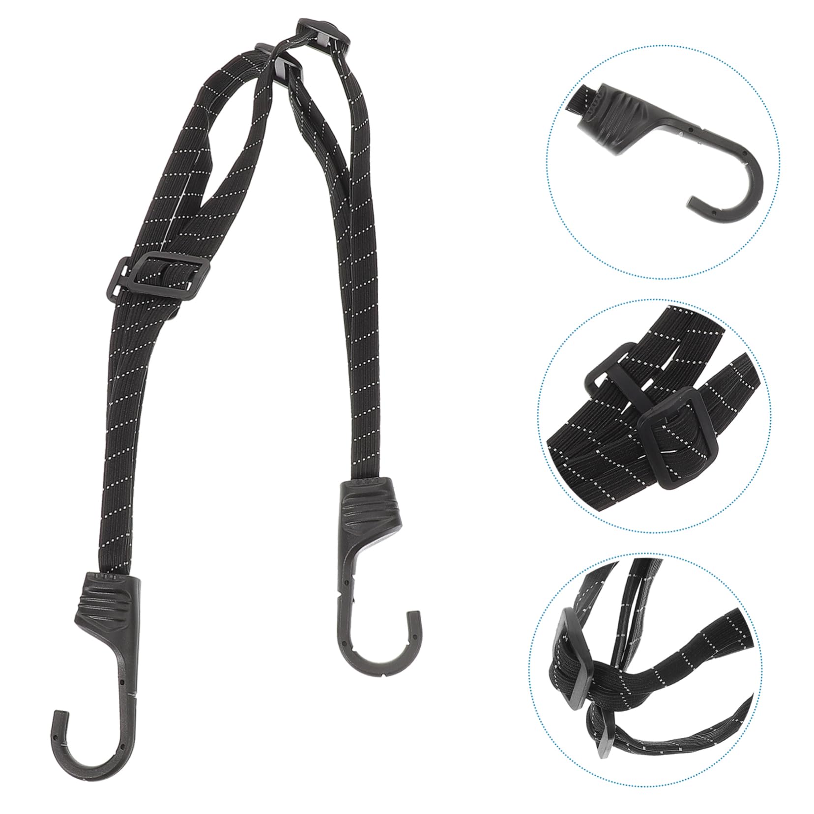 PORTE-BAGAGES,80cm--Cordon élastique avec crochets pour bagages, cordon Fixation Casque Vélo Beatifufu Corde élastique Pour Casque De Vélo, Scooter, Sangle D'arrimage Pour Bagages, Bande Réfléchissante élastique 59 Cm Fixation Cargaison Léger et pratique à transporter. Cette corde élastique 4 en 1 offre assez de force pour fixer vos bagages sur les chariots, les vélos et les motos. Les cordons plats répartissent la charge uniformément sans couper la cargaison. Toile de rechange avec corde élastique pour vélo couché Le design 4 en 1 offre plus de résistance pour sécuriser les bagages sur les véhicules. Wozwe Corde de Traction pour Bicycle, Sangle de Tension élastique pour... Les crochets aux deux extrémités se fixent sur le vélo ou la moto pour empêcher les marchandises de glisser vers le bas. Caractéristiques : Matériau : caoutchouc., Couleur : noir., Longueur : 59 cm.