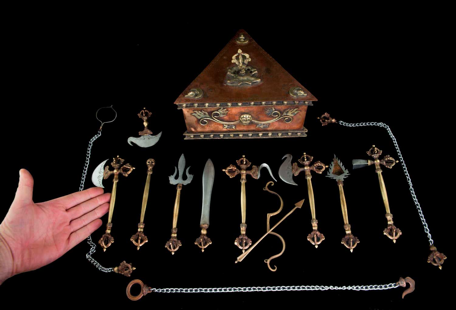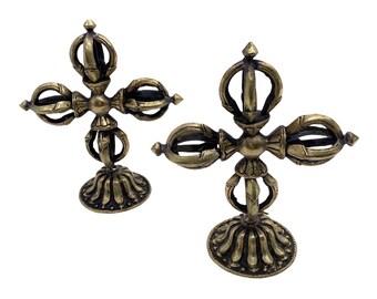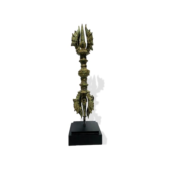 Le design en laiton met en valeur le charme de culture ancienne, ajoutant un style distinctif à votre tenue. Fabriqué en laiton, un processus de vieillissement spécial pour mettre en valeur une texture unique. Ce vajra dorge tibétain est fabriqué en cuivre, solide résistant à l'usure. Artisanat Tibétain Bouddhiste - Objets Spirituels et Sacrés du Népal (4 S'inspirant du vajra tibétain, il porte une profonde signification spirituelle offre une expérience sacrée. Outil pour rituel tibétain Vajra/Dorje, en laiton pur, incrusté de pierre | Symbole bouddhiste de pouvoir et de sagesse, décoration faite main de la culture tibétaine Dorje Laiton Outil Rituel DECHOUS Vajra Dorge Phurba Pilon Vintage Pilon Démon Pestle Bouddhisme Fournitures Religieuses Vintage Sculptures Antique Bouddhisme Décoration Outil Rituel Tibétain Laiton Vintage Fait à la Main Cinq Brins de Pilon Démon Bouddhisme Fournitures...