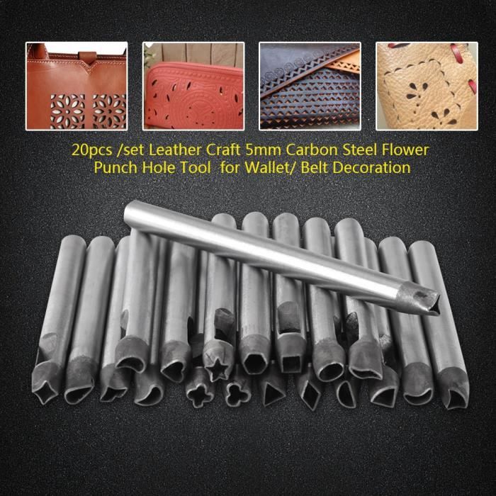 【Matériaux de haute qualité】 Les matrices de perforation sont fabriquées dans un matériau de qualité supérieure, durable et ont une longue durée de vie Cela vous aidera à jouer les matières rondes lorsque vous faites du travail du cuir 【Spécifications complètes】 La forme du coupe-joint est précise et nous proposons différentes tailles pour répondre à vos besoins. 7 pièces Perforatrice en Cuir, Outils de Coupe de Cuir 【Qualité fiable】 La lame est incisive et soignée à travers laquelle vous pouvez couper le cuir rapidement POINÇON INCISIF] : Perforez sans effort 3 couches de cuir avec l'outil de perforation en cuir. [FORTE PRATIQUE] : Utilisez facilement des pinces à main pour les articles en cuir, améliorant l'efficacité de la production Kit Poinçon Cuir Portable Perforatrice Pour Cuir - Set De 7 Matrices De Découpe Pour Outils Travail Du Cuir Tbest outil de perforation en cuir Perforatrice en cuir 10 embouts de...