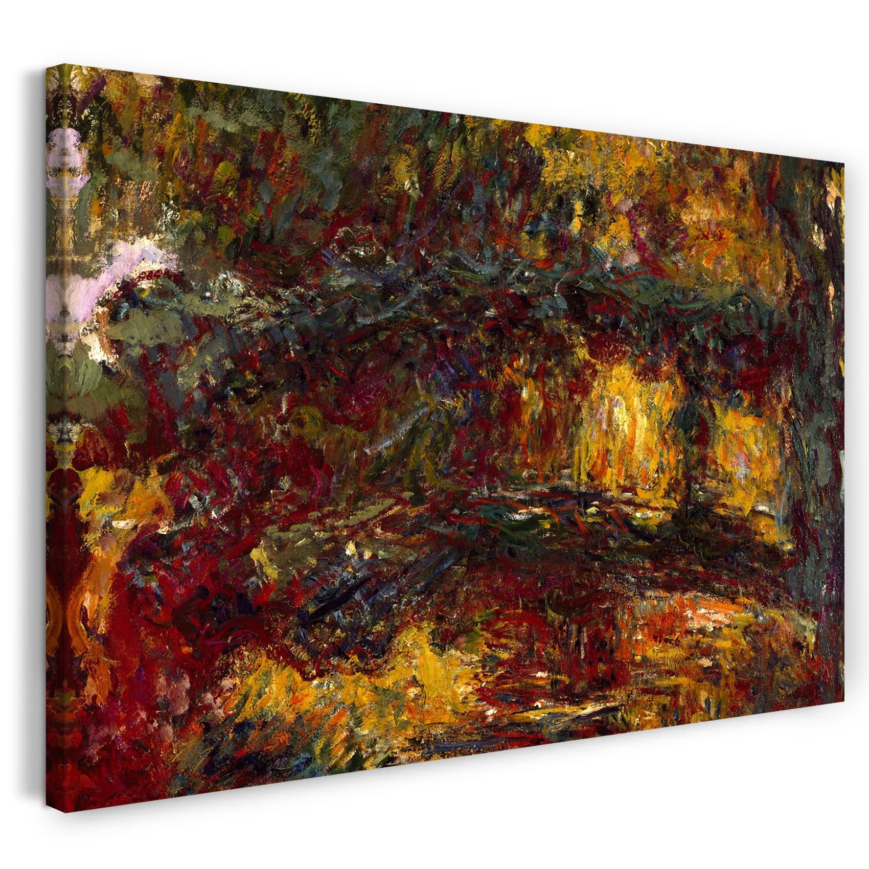 Tableau Toile Monet CLAUDE MONET - Pont Japonais Sur étang De Nénuphars IV, Cadre & Passe Impression Toile Pont Japonais Qu’ils soient pour le salon, la chambre à coucher ou le couloir, nos tableaux muraux apportent de la convivialité à votre intérieur - Nos tableaux sont d’excellentes idées de cadeaux. Chef-d' uvre visuel impressionnant dans l'ensemble chaque poster d'art Claude Monet est une uvre d'art captivante qui capture parfaitement les d tails et les motions, et qui est maintenant pr sent e dans un nouveau style l gant. Chacune des images est compl t e par la signature de Monet Puzzle d'Art 1000 pièces Claude Monet : Pont Japonais à Giverny FABRIQUÉ À LA MAIN EN ALLEMAGNE - Vous commandez, nous imprimons et tendons votre toile, quelle que soit sa taille - fait manuellement au cœur de Berlin. ÉCOLOGIQUE & ÉQUITABLE - Nous utilisons exclusivement des matériaux naturels et biodégradables comme le coton, des emballages en carton recyclé et du bois durable provenant de forêts européennes certifiées FSC - par respect pour notre environnement. Le Pont Japonais - Richard Hart ASSEMBLAGE MURAL FACILE - Les crochets fournis avec les vis permettent d'accrocher rapidement et facilement la toile au mur. 1: Quels sont les avantages de nos produits par rapport aux autres fabricants ? Le cadre: Nous utilisons de véritables châssis avec des baguettes assemblées. Le tissu de la toile: Nous utilisons du coton naturel d'un poids de 360g/m2 pour un toucher particulièrement doux de la toile tout en étant très robuste et durable. 6: Est-ce que je fais des économies s 3: Puis-je accrocher directement la toile? Oui, chaque commande contient deux crochets et quatre vis. La toile en coton naturel d'un poids de 360 g/m2 ainsi que les châssis assemblés en bois d'épicéa fournissent un produit durable et de grande qualité. Des motifs à haute résolution et des résultats de couleurs intenses avec une encre Fine Art résistante aux UV assurent une qualité supérieure et une longue durée de vie. De nombreux concurrents font de la publicité pour des châssis, mais vendent des baguettes solidement agrafées (non assemblées), avec lesquelles la toile ne peut pas être retendue et a donc une durée de vie nettement plus courte.