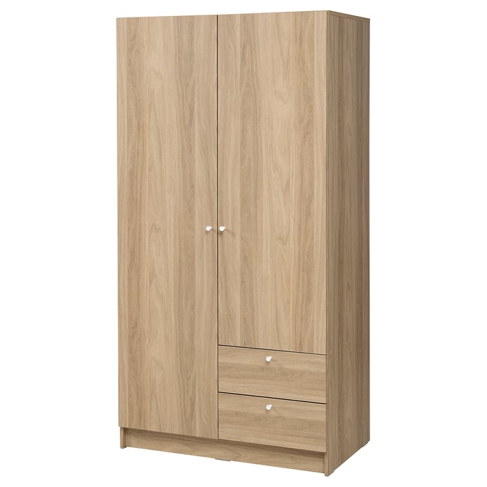 GRAND ESPACE DE RANGEMENT : Dotée d'une tringle robuste et de deux tiroirs volumineux, cette armoire de chambre simplifie l'organisation de divers vêtements. Deux portes cannelées ajoutent une touche d'élégance moderne, transformant votre espace en un havre de paix serein et élégant. Cette penderie de vêtement avec un kit anti-basculement, offrant sécurité pour votre famille CONSTRUCTION FIABLE : Construite en panneau de particules de haute qualité, cette armoire de rangement de chambre est prévue pour un usage régulier. Des portes à cannelures en relief et des poignées en bordure de doigt créent un look moderne et élégant Armoire 2 portes et 2 tiroirs blanc & chêne Sonoma (L90cm ESTHÉTIQUE MODERNE : Avec son design cannelé distinctif sur les portes, ce dressing de chambre apporte une touche artistique à votre chambre. Elle se fond harmonieusement dans un cadre moderne, alliant élégance et utilité. Cette armoire à portes HOMCOM vous apporte calme et ordre. Ses nombreux rangements permettent de ranger tout ce dont vous avez besoin, tandis que ses charnières à fermeture douce assurent une fermeture silencieuse Dressing Chambre Adulte Mercer41 Armoire-penderie Armoire Avec 2 Portes Cannelées, 3 Tiroirs Armoire Dressing 180 Cm La base surélevée de 15 cm de l'armoire de chambre d'adulte rend le nettoyage sous l'armoire sans effort , Montage nécessaire L'espace de suspension de 76 x 115 cm est idéal pour les costumes et les manteaux longs afin de prévenir les plis Achetez HOMCOM Armoire Chambre Adulte Penderie Vêtement Dressing avec 2 Portes, 2 tiroirs - 80 x 52 x 180 cm - Aspect Bois et des articles similaires sur Équipé de charnières à fermeture douce, assurant une fermeture silencieuse des portes sans claquement Idéale pour réorganiser sans troubler le sommeil de vos proches. Package includes: 1 x Armoire 1 x Manuel d'Assemblage SPÉCIFICATIONS : Dimensions totales : 80l x 50P x 180H cm., Charge max.