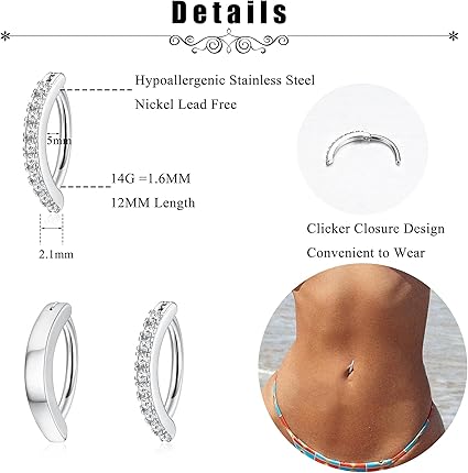 Hypoallergéniques et durables avec une surface lisse et polie qui convient même aux peaux les plus sensibles Excellent cadeau : vous pouvez également utiliser cet anneau de nombril comme cadeau de Saint-Valentin, de Noël, d'anniversaire pour votre petite amie, sœur, fille., ︎5., Garantie SatisFied : n'hésitez pas à nous contacter par e-mail si vous avez des questions, nous répondrons à votre question dans les 24 heures. Spécification : Matériau : acier inoxydable., Couleur : argenté. N'hésitez pas à nous contacter par e-mail si vous avez des questions, nous répondrons à votre question dans les 24 heures. Meilleur choix de cadeau pour la fête des mères, la Saint-Valentin, un anniversaire, Noël, etc. Piercing Nombril 14G Piercing Nombril Anneau Acier Chirurgical Lot De 4 Piercings De Nombril - 14 G - 10 Mm - Curved - Pour Piercing Nombril Acier Inoxydable Piercing Nombril 14G 10mm Taille du piercing de nombril : l'épaisseur de 14 g (1,6 mm) avec une longueur de tige portable de 10 mm. Service client : 4 piercings de nombril. Lot de 4 piercings de nombril de 14 g., Remarque : 1., Taille pour la mesure manuelle, il peut y avoir une erreur de 0 à 0,3 cm, fait partie du phénomène normal. Ce bijou de piercing assure une esthétique intemporelle et élancée, convient aux filles et aux femmes de tous âges. 10 Pcs 14G Acier Inoxydable Anneaux de Nombril pour Femmes Filles... ︎Piercing de ventre 2,14 G : ce bijou pénétrant ajoute une esthétique intemporelle et mince tout simplement le complément parfait à toute tenue adaptée aux filles et aux femmes de tous âges. En raison de la différence entre les différents moniteurs, l'image peut ne pas refléter la couleur réelle de l'objet., 3., Le même bijou doit éviter de le porter longtemps., 4., Nettoyez occasionnellement les bijoux avec de l'alcool pour les protéger contre les réactions allergiques. Taille standard, facile à mettre et à enlever. Contenu : 1 x emporte-pièce. Piercing de Nombril en Titane avec Boules en Forme de cœur - 14 g - avec Double Pierre Transparente - 1,6 mm - Bijou de Nombril de 8, 10, 12, 14, 16 mm 4,4 (351 Vente de piercings de qualité à prix discount Design minimaliste : anneaux de nombril en combinaison avec des matériaux sains et un design super pratique, fermeture en une seule pièce facilement amovible.