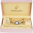 Privilégiez le service et la rapidité : ce coffret cadeau idéal est emballé et expédié par AMAZON Montre disposant d'un mouvement quartz haute précision - Dimensions boitier 22 mm - épaisseur du boitier 8 mm Boitier Acier - Type d'affichage : Analogique Type de verre : Minéral - une pile de rechange offerte Faites vous plaisir ou offrez ce coffret cadeau parfait pour Noël, Anniversaire, Fête des Mères, Saint Valentin ou toute autre occasion. Montre disposant d'un mouvement quartz haute précision - Dimensions boitier 22 mm - épaisseur du boitier 8 mm. Ensemble Collier Et Boucle D'oreille Coffret Cadeau Fille - Montre Boitier Acier - Type d'affichage : Analogique Coffret cadeau bijoux collier avec boucles oreilles acier femme Montre Quartz Acier 22mm Coffret Montre Bague Et Bracelet Femme Cadeau élégant Ensemble Bijoux Faites-vous plaisir ou offrez ce cadeau parfait pour Noël, anniversaire, fête des mères, Saint-Valentin ou toute autre occasion.