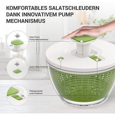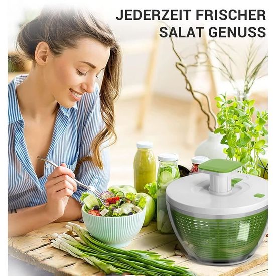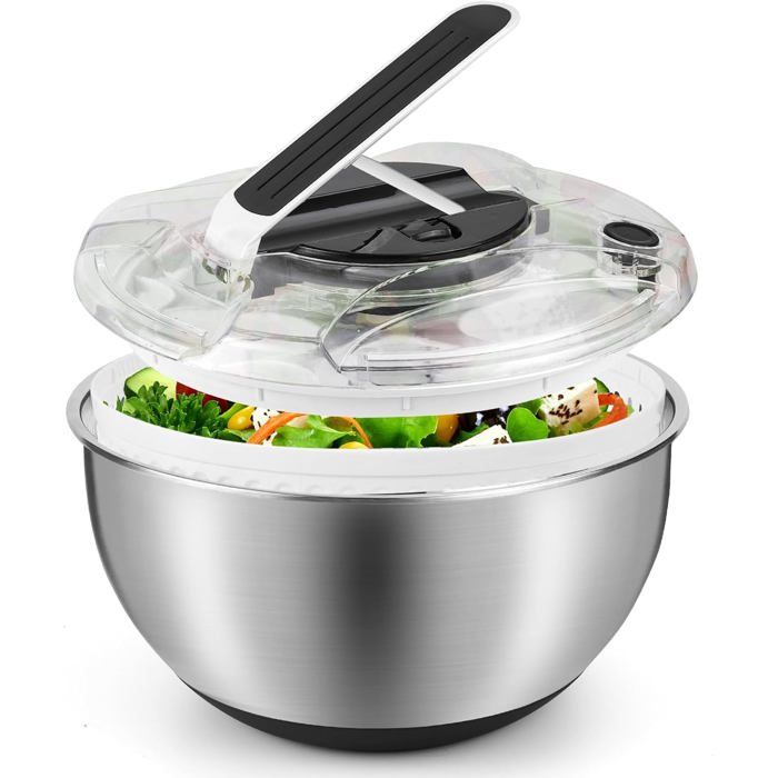 Que vous prépariez des repas quotidiens ou que vous l'utilisiez fréquemment, il peut vous offrir une expérience de cuisine durable et fiable. Essoreuse à salade - Inox - 3.5L - Diamètre 27cm - Compatible lave Son panier à eau à double paroi est facilement amovible : il peut servir de filtre ou de grand saladier. C'est un déshydrateur multifonctionnel pour fruits et légumes ✅ UNE MACHINE MULTIPLES - Elle peut non seulement sécher les salades, mais aussi traiter les légumes et les herbes et même égoutter l'excès d'eau des pâtes et des aliments frits. Il est robuste, durable et inodore et garantit ainsi l'hygiène et la sécurité des aliments. À partir d'aujourd'hui, préparez chaque bouchée de salade croustillante et rafraîchissante et économisez du temps et des efforts à chaque repas. ✅ Design de grande capacité – Design de grande capacité pour répondre aux besoins des dîners en famille ou des réunions avec plusieurs personnes. Il fait facilement face à une variété de tâches de cuisine, réduit la fréquence de changement d'outils, économise de l'espace et du temps et est un ustensile de cuisine idéal pour toute famille qui accorde de l'importance à l'efficacité et à une alimentation saine. Êtes-vous souvent ennuyé par la teneur en eau trop élevée des salades et légumes lavés ? Une salade pâteuse détériore non seulement le goût, mais affecte également l'effet d'assaisonnement et peut même facilement conduire à la détérioration des aliments, ce qui permet de gaspiller du temps et des ingrédients. Salad Spinner , 5 L, Grande Manuelle Et Sèche Essoreuse à Salade 🌟 Spécification : Matériau : acier inoxydable + PP Dimensions : 24,5 x 22 x 19,8 cm Contenu : 1 essoreuse à salade en acier inoxydable. Facile à utiliser, confortable et sûr : ce spinner à salade est équipé d'un entraînement à manivelle robuste qui tourne facilement et économise du travail, ménage les poignets et ne provoque pas de fatigue même en cas d'utilisation prolongée Le design à double clip maintient la housse fermement en place, évitant ainsi tout glissement accidentel. Utilisation multifonctionnelle, bonne aide dans la cuisine : cette essoreuse à salade avec couvercle convient non seulement pour sécher les feuilles de salade, mais peut également traiter efficacement les légumes, les herbes et les baies et peut même être utilisée pour égoutter les pâtes ou pour enlever l'excès d'huile des aliments frits, ce qui permet d'obtenir de multiples utilisations dans un seul appareil. Séchage rapide : il suffit de le tourner doucement pour sécher l'excès d'eau immédiatement. Grâce au couvercle supérieur transparent, vous pouvez voir le processus de séchage en un coup d'œil et ainsi gagner du temps. Que ce soit à la maison, en pique-nique en plein air ou en voyage, ils sont le choix idéal pour la préparation et la présentation des repas et améliorent l'efficacité et la qualité des aliments. Il est facile à nettoyer, ce qui réduit les efforts de nettoyage. Matériau de haute qualité, sûr et durable : cette essoreuse à salade est fabriquée en acier inoxydable 304 et en plastique ABS sans BPA. Choisissez notre déshydrateur à salade automatique pour résoudre vos problèmes.