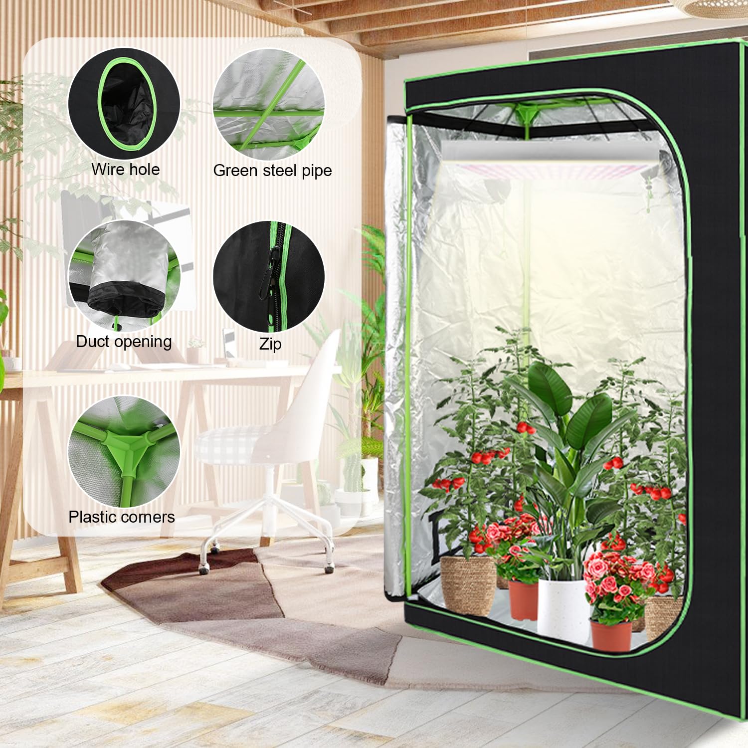 EN STOCK : Tente de culture 60x60 pas cher. Grand choix, promos permanentes et livraison rapide partout en France. Paiement sécurisé Les fenêtres d'aération au fond et le design Velcro améliorent la circulation de l'air et réduisent la température intérieure, créant un environnement de croissance idéal pour les plantes. Tente Jardinage Maison HIGHWERK Tente De Culture 40 X 40 X 120 Cm Tente De Culture Indoor Pour Tente De Culture Intérieure La couche extérieure en polyéthylène renforcé empêche la lumière de s'échapper. Nombreuses utilisations : convient pour les garages de maison, les balcons, les buanderies, les armoires et autres endroits. Disponible en différentes tailles pour répondre aux besoins des petits jardins familiaux aux grandes surfaces de culture et vous offrir de nombreuses solutions de culture. Serre Tente de culture de plantes d'intérieur Tente de culture Armoire... Tente de Culture Hydroponique de Jardinage - 60*60*140 cm Fenêtre d'observation et fenêtre de ventilation : grâce aux fenêtres d'observation transparentes de la tente de culture haute performance, vous pouvez vérifier l'état de croissance des plantes sans avoir à ouvrir la tente. Installation rapide et facile : l'installation ne nécessite aucun outil supplémentaire et se termine en quelques étapes. Structure de support stable : la tente dispose de poteaux en métal à haute résistance de 16 mm de diamètre et d'une épaisseur de paroi de 0,8 mm reliés à des raccords d'angle robustes et construits avec précision pour former un cadre solide.