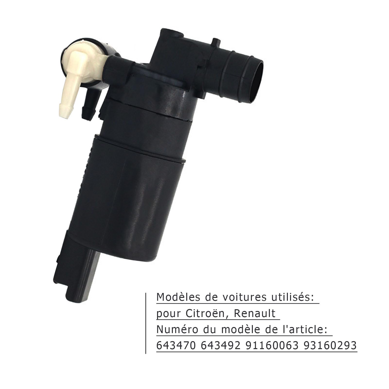 【Haute Qualité et Durabilité】: Pompe Lave Glace des matériaux de première qualité, notre pompe résiste aux températures élevées et aux chocs. Elle est conçue pour résister à la chaleur, aux chocs et est fabriquée avec des composants non toxiques pour une utilisation sûre et écologique., 4., Découvrez la solution idéale pour le remplacement de votre pompe lave glace avec notre modèle haut de gamme conçu spécifiquement pour une compatibilité étendue avec les véhicules . Pompe lave-glace pour citroën Berlingo C1 C3 C4 C5... – Grandado POMPE LAVE-GLACE AVANT FORD FIESTA 2005 【Compatibilité étendue】: Pompe de lave-glace compatible avec Citroën/Renault Clio/Peugeot 106, 207, 307, 308, C2, C3, C4, C5, C8., Options OEM : 643470, 643492, 4410722, 4408575, 91160063, 93160293, 7700428386, 8200194414 et 7700430078., 【Facile à installer】: La pompe à eau de lave-glace compatible avec Peugeot a une haute qualité et une finition soignée, elle peut donc être installée rapidement et facilement. Pompe de lave-glace pour Renault 16. - Renault16 Shop Cela peut vous aider à faciliter le nettoyage de votre pare-brise. 【Bonne pièce de rechange】: pompe lave glace pour compatible citroën Idéale pour remplacer votre pompe de lave-glace usagée ou endommagée, elle fonctionne à 12 V et propulse le liquide à travers les buses de lave-glace sur le pare-brise, éliminant ainsi rapidement et efficacement la saleté. Pompe De Remplacement 643470 Pompe Lave-glace GIONAR Pour Citroën, Renault, Peugeot - OEM 643470, 643492, Etc. - Remplacement Facile Pompe Essuie-glace Oem Pompe Lave Glace Spécifications: Poids de l'article: 90 g Dimensions du colis: 10 x 6 x 3 cm; 90 grammes Numéro du modèle de l'article: 643470 643492 91160063 93160293 Compatible: pour Citroen,pour Renault Contenu du colis: 1 x pompe lave glace Description: 1., Découvrez nos pompes de nettoyage de vitres avant de haute qualité, compatibles avec les modèles Citroën, Renault et bien d'autres modèles. Fabriquée à partir de plastique noir durable, cette pompe de lave-glace est conçue pour fournir des performances fiables et durables et est facile à installer et à utiliser., 2., Ne laissez plus un tuyau depompe de lave-glace défectueux vous empêcher de garder une vue dégagée sur la route.
