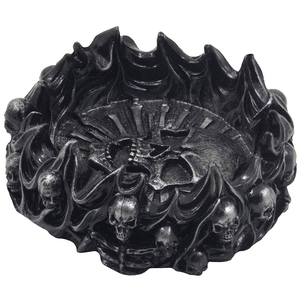 Cendrier gothique avec une faucheuse avec des crânes sur les côtés , Matériau : résine Dimensions : 12,9 cm de diamètre x 7,6 cm de haut. Dimensions : 12 cm de diamètre x 7,6 cm de haut Décoration de Halloween grime reaper pas cher Autonome pour être facilement placé sur un bar, une table de cuisine ou une table d'appoint Décoration Faucheuse avec Lumière et Atomiseur de Fumée - déguiz-fêtes Décoration Halloween Autonome Sculpture De Faucheuse - VBESTLIFE - Résine - Décoration Halloween Décoration Résine Sombre Photos Effrayantes De La Faucheuse