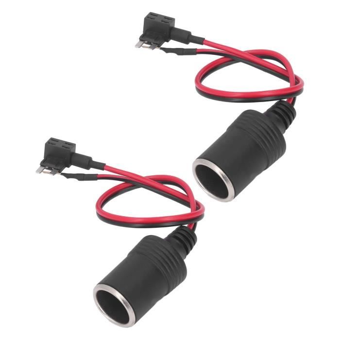 MATÉRIAUX PREMIUM – Fabriquées en ABS ignifuge résistant jusqu’à 200 °C, ces prises affichent une robustesse supérieure. Présentation du produit 2 Pcs 12V/24V Prise Allume-Cigare Fiche Universelle avec Fusible 8A,Allume-Cigare Connecteur de Prise Mâle pour Camions Prise allume-cigare sans soudure : 12/24V universel, 120W haute puissance ; tête de charge en cuivre pur nickelé, bonne conductivité Le fusible intégré de 8A protège efficacement vos équipements contre les risques électriques. INSTALLATION SIMPLE ET RAPIDE – Pas besoin de soudure ! Idéal comme remplacement ou extension de votre installation électrique automobile, ce kit pratique vous permet d’équiper plusieurs véhicules ou appareils Les bornes positives et négatives se connectent facilement grâce aux vis incluses. Grâce à leur qualité de fabrication robuste et leur montage simplifié par vis, elles conviennent aussi bien pour un remplacement que pour une installation supplémentaire. Lot de 2 Prises Allume-Cigare,Imperméable Marine Grade étanche pour Moto ,Voiture,avec câble de raccordement de 1 m 12V/24V - Auto PROTECTION PAR FUSIBLE 8A – Chaque connecteur intègre un fusible remplaçable de 8 ampères qui prévient les dommages liés aux surcharges, courts-circuits ou surtensions, garantissant une utilisation plus sûre et une durée de vie prolongée de vos appareils électroniques La coque en ABS ignifuge supporte des températures élevées, tandis que les contacts en cuivre nickelé garantissent une excellente conductivité et réduisent les pertes de courant. Elles alimentent facilement divers appareils tels que réfrigérateurs de voiture, purificateurs d’air, enregistreurs de conduite ou aspirateurs portables Description générale Ce produit est un embout amovible conçu pour le raccordement à une prise allume-cigare standard (diamètre 20mm) ou à une prise ronde de plus petit diamètre (12mm, norme allemande). Il est idéal pour connecter des appareils tels que des machines à café et des bouilloires Chauffage Voiture Allume Cigare 12v 2 Pcs 12V/24V Prise Allume-Cigare Fiche Universelle Avec Fusible 8A,Allume- Cigare Connecteur De Prise Mâle - Auto Prise Allume-cigare 12V/24V COMPATIBILITÉ LARGE 12V/24V – Ces fiches allume-cigare conviennent aux voitures, camions, motos, camping-cars, bateaux et véhicules utilitaires.