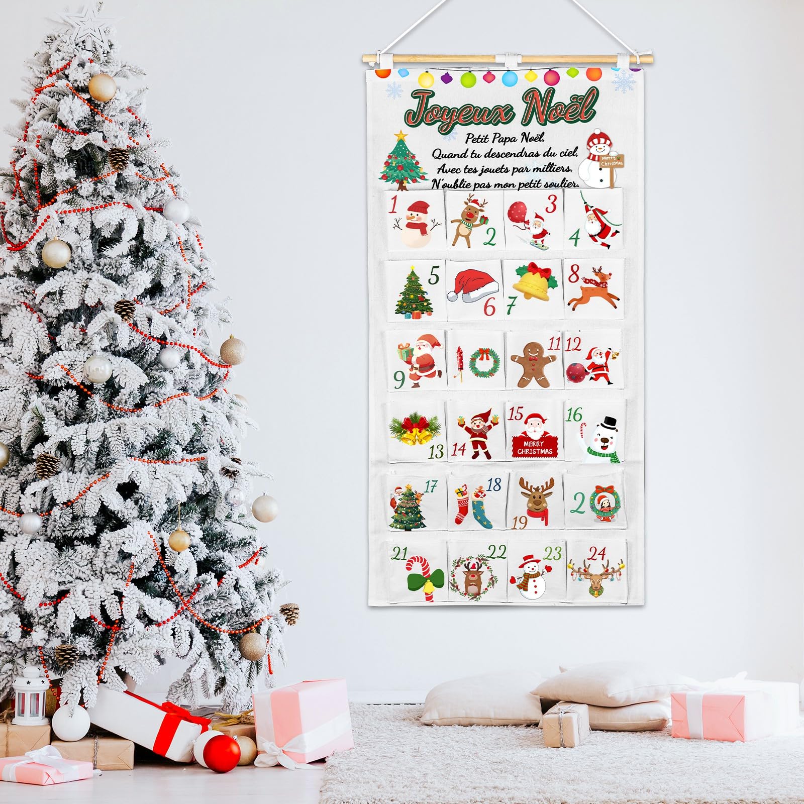 Il peut également servir de cadeau de Noël ou de carte de vœux. Rangement chaussures suspendu avec 24 grandes poches noir - Conforama Comptez les 24 jours jusqu'à Noël 2025 en famille et entre amis : une façon amusante de vous imprégner de l'esprit de Noël. 🎅【Décoration de Noël amusante】Ce calendrier de Noël en tissu est livré avec un bâton en bois lisse et une ficelle de suspension pour une installation facile. Amusez-vous à remplir et à ouvrir de petits cadeaux ensemble pour un Noël mémorable. Calendrier Personnalisé Calendrier De L'avent A Remplir 2025, Calendrier De L'avent Vide DIY Calendrier De L Avent Tissu Vide 📅【Calendrier de l'Avent réutilisable】Le calendrier de l'Avent LIHIQIYA est fabriqué dans un mélange de coton et de lin de haute qualité, inodore et agréable au toucher. Entourez le Calendrier de l'Avent de lumières colorées pour une décoration de Noël parfaite. 🎁【Cadeau de Noël créatif】Ce magnifique Calendrier de l'Avent en feutre est un cadeau de Noël idéal. C'est un cadeau idéal qui surprendra votre enfant chaque jour jusqu'à Noël. Calendrier de l'Avent suspendu, calendrier de l'Avent 43,3x20,5 pouces Des petites surprises chaque jour ajouteront à l'impatience et à la joie de Noël. Organisateur de rangement suspendu pour leggings de yoga avec 24 poches...