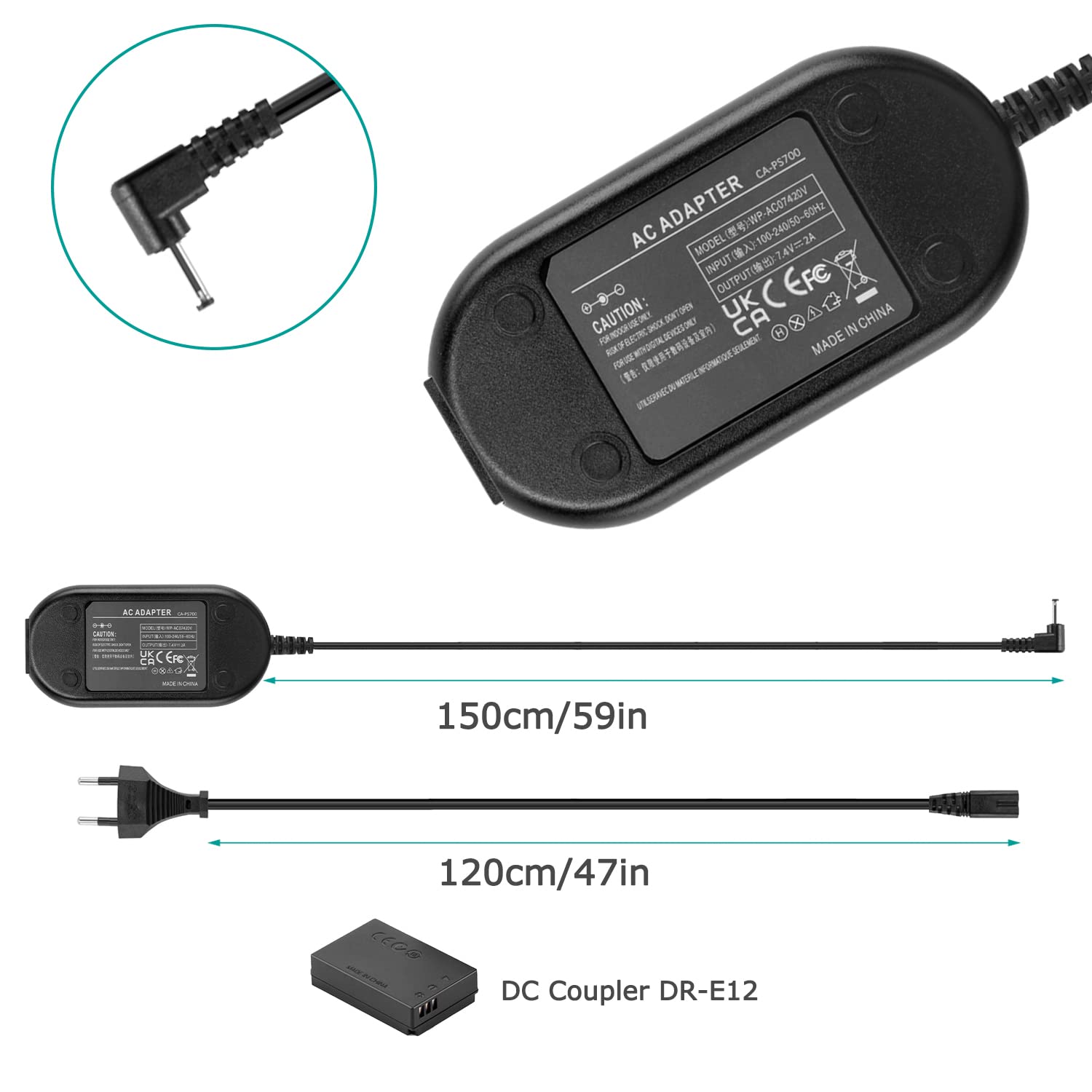 Cela signifie que la sortie de votre batterie externe n'est pas suffisante. Alimentation Continue Appareil Photo Andoer DR-E12 Kit D'alimentation USB Coupleur CC Batterie Factice Batterie Factice Canon DR-E12 Tension et courant d'entrée : USB 5 V 2 A 4 A., Sortie CC : 8 V. Assurez-vous que votre batterie externe est complètement chargée ou changez une autre banque d'alimentation de haute qualité. Nous offrons à votre appareil une protection complète contre la surcharge/la surcharge, les courts-circuits ou la surchauffe, ce qui garantit la sécurité pendant l'utilisation. Protection de sécurité : passé la certification CE, construit avec puce IC de qualité supérieure à l'intérieur. Poids de l'article : 55 g. Design d'une seule entrée USB : entrée USB : 5 V, 2 A 4 A (courant minimum 2 A, jusqu'à 4 A si nécessaire)., Sortie CC : 8 V. La caméra ne peut pas être allumée (ou l'appareil photo s'allume, mais s'éteint immédiatement lors de l'enregistrement). Longueur du câble : 115 cm. Remarque : Veuillez utiliser 5 V 2 A 4 A (sortie) Power Bank / Mobile Power pour l'alimentation. Andoer DR E12 - Kit d'alimentation USB - Coupleur CC Andoer DR-E8 Batterie Dummy avec DC Power Bank Adaptateur USB... Poids du paquet: 81 g Contenu : 1 batterie aveugle Andoer DR-E12 DC coupleur.