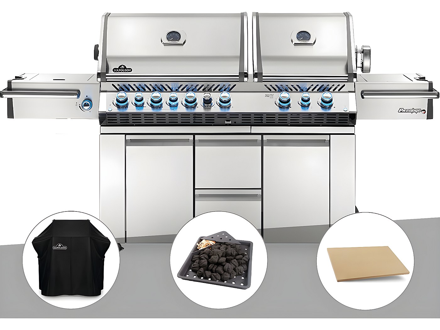 Le barbecue gaz encastrable Prestige PRO 825 Napoléon est un appareil de cuisson XXL, c’est le plus grand barbecue encastrable de la marque. Il dispose de 5 brûleurs principaux, d’un tiroir pour copeaux et de son brûleur, de 2 brûleurs Sizzle Zone, d’un brûleur arrière infrarouge Pourquoi choisir un barbecue encastrable à gaz Napoléon Barbecue Gaz Napoleon Barbecue Gaz Encastrable Napoleon Prestige Pro 665 Inox 4 Brûleurs + Sizzle Zone + Brûleur Napoleon Pro 825 Rsbi