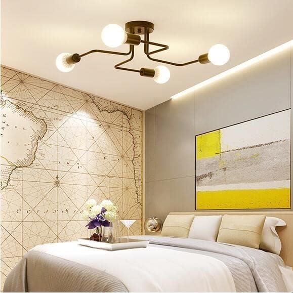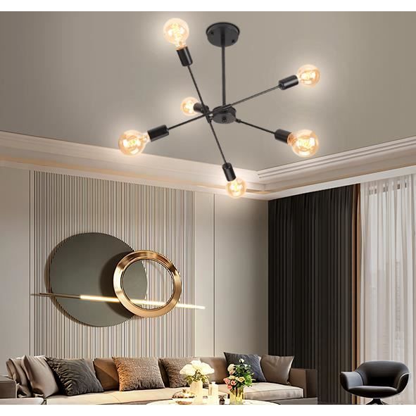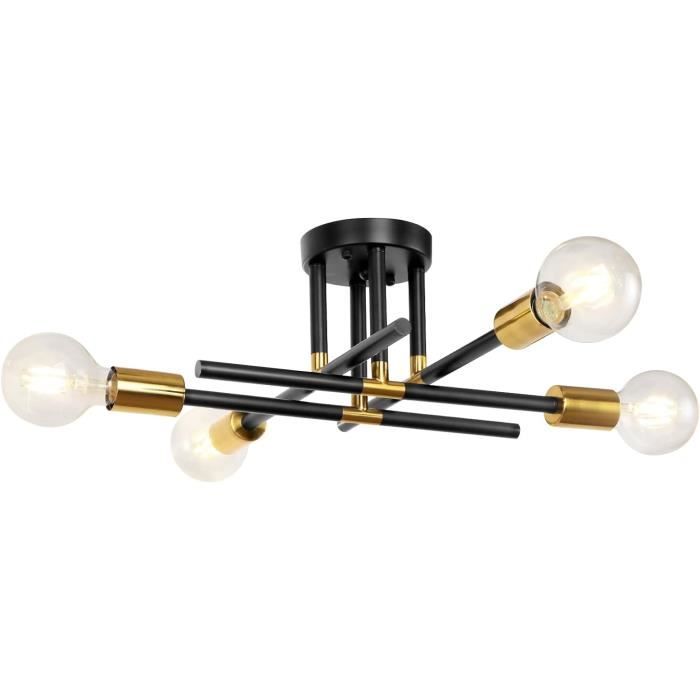 MATÉRIAUX DE HAUTE QUALITÉ - Le plafonnier est fabriqué en fer robuste et durable avec une surface peinte, facile à nettoyer, ne rouille pas, dure longtemps Spécification: Couleur: Noir Matière: Métal fer forgé Support de lampe: support de lampe E27 Nombre d'ampoules nécessaires: 4 Dimensions: L: 53 cm x H: 21 cm Tension: 220-240 V Types d'ampoules applicables: ampoules à incandescence, ampoules Edison, ampoules LED, etc. STYLE INDUSTRIEL MODERNE - Le Lustre E27 noir présente un design rétro du milieu du siècle avec un aspect classique, élégant et intemporel. Lustre industriel Sputnik noir à 4 lumières moderne vintage FACILE À INSTALLER - Les bras du plafonnier sont pré-câblés, il suffit de connecter les bras à la base et de la fixer au plafond. Pied de plafonnier industriel rétro : E27. [Matériau] Le plafonnier rétro adopte une base en métal de haute qualité, solide et durable. La surface du connecteur et de la base de l'ampoule est galvanisée et a une densité uniforme Lustre Noir Sputnik Lustre Industriel,4 Lumières E27 Lampe Suspension Lustre Sputnik 4 Lumières Équipé de 4 douilles E27, ce plafonnier led fonctionne avec des ampoules LED ou dimmables jusqu’à 60W. Parfait pour des espaces souhaitant un éclairage modulable. Design rétro industriel tendance. Son style lustre chambre en croix avec base ronde de 20 cm apporte une ambiance chaleureuse et industrielle