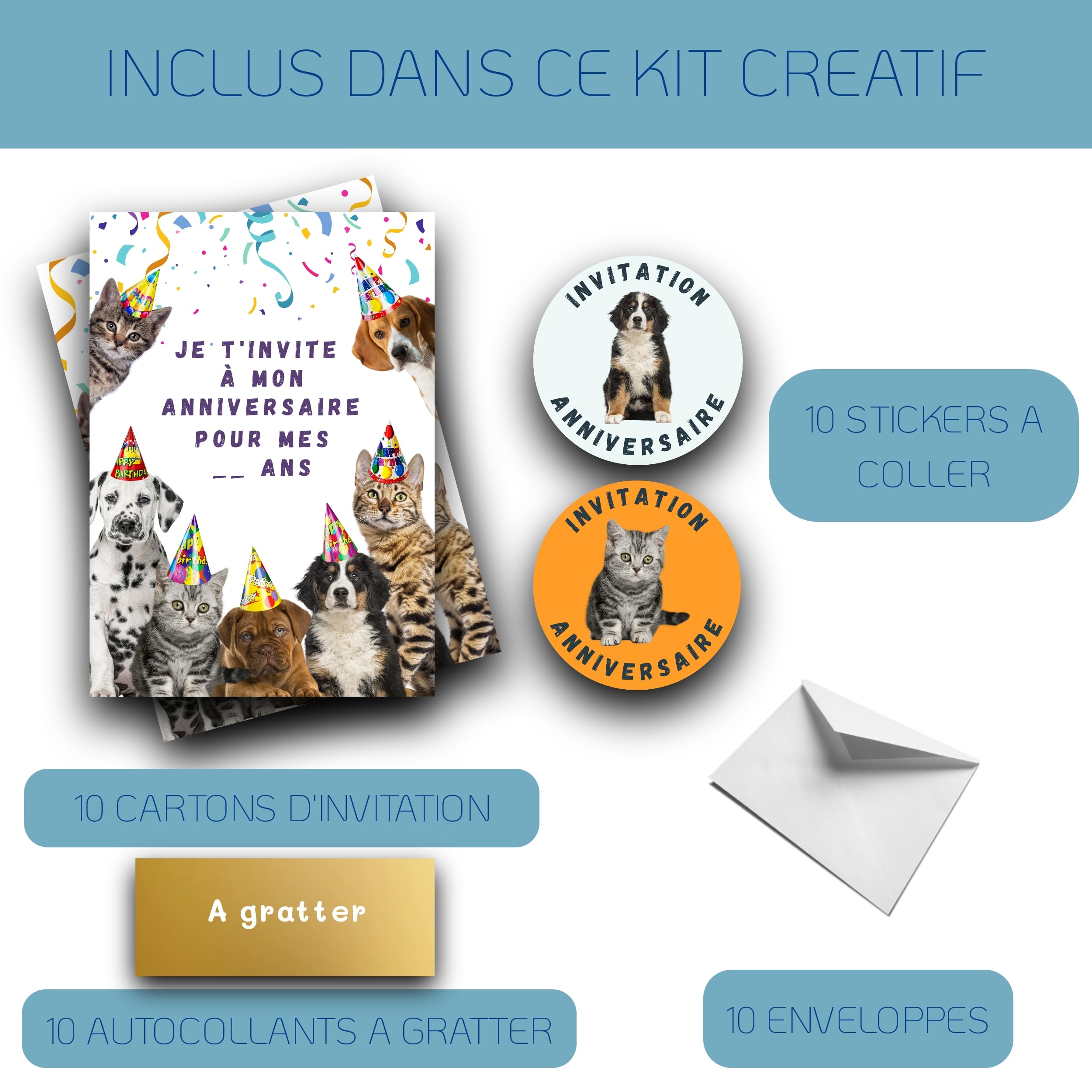 Ces invitations sont imprimées sur du papier qualité supérieure (230g/m2) assurant leur durabilité Préparez-vous à vivre des souvenirs inoubliables grâce à ces invitations uniques. Vous disposez de suffisamment d'espace pour indiquer toutes les informations nécessaires telles que le prénom, l'âge, la date, l'heure et le lieu de l'événement. ✨ Autocollants dorés à gratter pour plus de mystère : Chaque invitation comprend des autocollants dorés à gratter qui révèlent des surprises et des détails cachés Un élément ludique qui rendra chaque invitation encore plus excitante pour vos petits invités. Tout est pré-imprimé sur les cartes, simplifiant ainsi leur personnalisation. RXLITE KIT créatif Invitations Anniversaire à gratter thème CHIENS 🖍️ Facile à personnaliser : Toutes les informations essentielles, comme le prénom, l'âge, la date, l'heure et le lieu de l'événement, peuvent être ajoutées facilement grâce aux champs pré-imprimés. Compléter ces invitations devient un jeu d'enfant, rendant la personnalisation rapide et sans effort., 🎉 Lola et Louis (L&L) Kit invitation coplet pour 10 invités Invitations Anniversaire Chien Squelette RXLITE Kit Créatif De 10 Cartes D'invitation Anniversaire à Gratter Thème Jurass Cartes Invitation Chien Squelette Format A6 (10 x 15 cm) pour une distribution facile Laissez-le exprimer sa créativité en remplissant les informations essentielles pour une expérience personnelle et unique. Découvrez & Créez vos Le Chien Cartes Postales Invitations pour Anniversaire. Personnalisez avec vos images, textes ou vos propres designs. Fabriqué avec soin, conçu par des créateurs indépendants du monde entier. Rapide & facile à personnaliser Les stickers amusants ajoutent une touche de fantaisie aux enveloppes, tandis que les autocollants dorés à gratter cachent le lieu de la fête, offrant une surprise mystérieuse que votre enfant pourra dévoiler avec soin. 💀 Plongez dans l'univers du Chien Squelette : Parfaites pour tout amateur de fêtes à la fois effrayantes et amusantes, ces cartes sont idéales pour préparer un anniversaire ou tout autre événement festif thématique. Description du produit Ce lot contient tout ce dont vous avez besoin pour inviter vos amis et vos proches à une fête d'Halloween mémorable. Nous vous recommandons fortement de gratter l'autocollant avec une pièce de monnaie !, 🎟️
