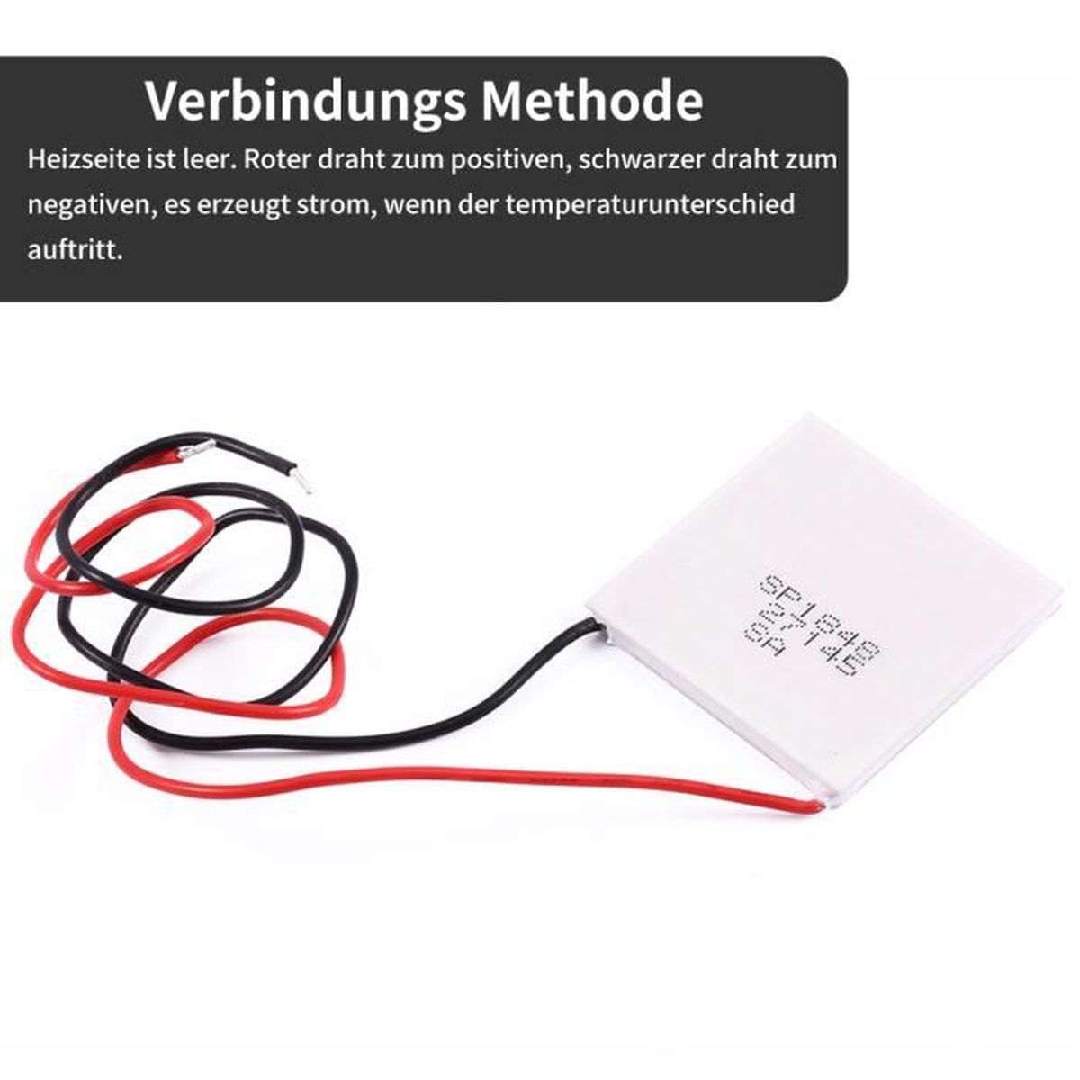 Emballage inclus : 1 x module d'alimentation thermoélectrique Spécifications : Modèle : SP1848-27145 Couleur : Blanc Longueur du fil : environ 300 mm Taille : 40 mm x 40 mm x 3,4 mm Différence de température de 20 degrés : Tension en circuit 0,97 V, Courant généré : 225 mA Différence de température de 40 degrés : Tension en circuit 1,8 V, Courant généré : 368 mA Différence de température de 60 degrés : Circuit Tension 2,4 V, Courant généré : 469 mA Différence de température de 80 degrés : tension en circuit 3,6 V, Courant généré : 558 mA Différence de température de 100 degrés : tension en circuit 4,8 V, Courant généré : 669 MA Les valeurs ci-dessus sont à titre de référence seulement, le câblage en utilisation réelle et la carte élévateur, il y aura une perte de courant. [Génération d'énergie efficace] Le côté chauffage est vide, fil rouge au positif, fil noir au négatif. FTVOGUE Peltier TEG SP1848-27145 Générateur d'électricité thermoélectrique haute température 150 °C 40 x 40 mm [Production d'énergie efficace] Génère de l'électricité lorsqu'une différence de température se produit, fournissant une alimentation fiable. Fil rouge au positif, fil noir au négatif, il génère de l'électricité lorsque la différence de température se produit. Léger, longue durée de vie Production énergie Propre 150°C Max Module Peltier De Générateur Thermoélectrique SP1848 27145-plaque De Production D'énergie TEG Résistante à La Chaleur à 120 Degrés-40x40mm Module Sp1848-27145 Production Courant Módulos Peltier de alto rendimiento - CUI Devices | DigiKey