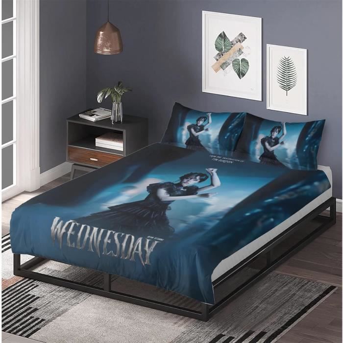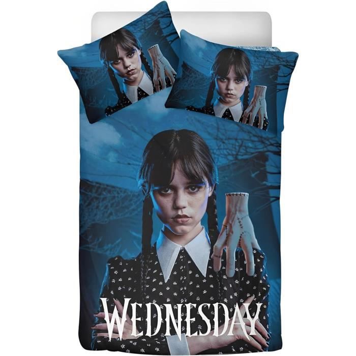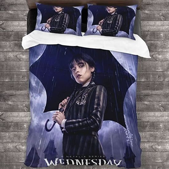 Décoré de motifs emblématiques comme des chauves-souris, des crânes, des toiles d'araignée et des croissants de lune en violet et noir Housse De Couette Mercredi Addams Parure De Lit 3 Pièces Housse De... Confectionnée en microfibre polyester de qualité et certifié Oeko Tex, douce au toucher et facile d'entretien L'ensemble comprend une housse de couette 140x200 cm et une taie d'oreiller 63x63 cm, parfait pour un lit une place. Les motifs détaillés et les couleurs dramatiques créent une atmosphère mystérieuse idéale pour les fans de la série. Microfibre Polyester Oeko-Tex Parure De Lit Wednesday Addams Rain, 100% Coton, Housse De Parure De Lit Mercredi Addams La qualité du textile assure une utilisation durable toute l'année, tandis que le design réversible offre deux styles distincts pour varier l'ambiance de la chambre. Parure de lit violet 260x240cm Housse de couette double face avec motif gothique Wednesday sur fond violet d'un côté et motif blanc avec crânes et chauves-souris de l'autre Fabriquée en microfibre polyester, cette parure est confortable et facile d'entretien, lavable en machine à 40°C.