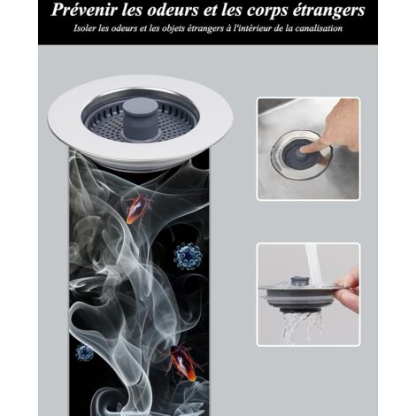 Faites attention aux bords tranchants lors de la manipulation Veuillez mesurer la taille avant d'acheter., 2., Il est hautement compatible avec la plupart des éviers de cuisine courants, de sorte que vous pouvez l'installer facilement., 3., Le bouchon pop-up amélioré est facile à utiliser pour basculer rapidement entre le stockage d'eau et le drain. Réponse rapide, joint fiable. Le joint d'étanchéité en silicone garantit l'étanchéité, empêche les fuites d'eau. Avec une seule pression, vous pouvez basculer entre les stockages et les écoulements - Pratique pour la cuisine, le restaurant et plus encore Feluxor 3 en 1 Pop-Up Bouchon de Vidange en Acier Inoxydable Empêche les bouchons de tuyaux, maintient l'écoulement libre. Matériaux de qualité supérieure pour une longue durée de vie : fabriqué en laiton robuste + acier inoxydable 304., Laiton pour une fermeture stable, acier inoxydable pour l'hygiène et la stabilité. 2 Pièces Bonde De Lavabo Pop-Up Universel, Bouchon De Lavabo... Filtre évier Laiton Acier 304 Yooyan Filtre D'évier De Cuisine Et Bouchon De Lavabo 3 En 1 En Acier Tamis évier Anti-odeurs Montage sans outils - Il suffit de mesurer, insérer, et c'est prêt. Contenu de la livraison : 1 filtre d'évier de cuisine. Multifonction 3 en 1 : notre filtre d'évier combine les fonctions de drainage, de stockage d'eau et de filtration. Efficace contre les odeurs, les parasites et les blocages Remarques : En raison de la différence entre la lumière et le réglage de l'écran, la couleur de l'élément peut être légèrement différente des images. Panier filtrant anti-obstruction : en acier inoxydable à mailles fines, le panier capture efficacement les restes alimentaires. Description du produit : Ce filtre d'évier de cuisine est une solution tout-en-un pour votre évier de cuisine., 1., Il est adapté à la plupart des éviers de cuisine courants avec des trous de drainage de 75 à 86 mm de diamètre et plus de 40 mm de profondeur. De qualité supérieure pour durer des années