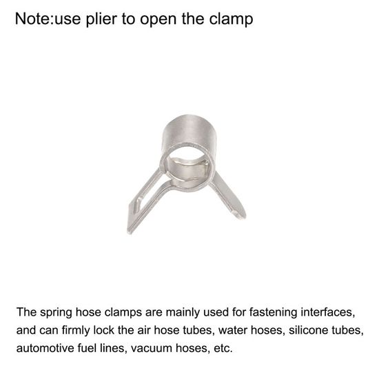 Largement utilisé dans les industries de l'automobile, de la marine, des tondeuses à gazon, de l'agriculture, de la manutention, de l'usine et de la construction. Avantage - Ce collier de serrage à ressort est facile à utiliser, utilisez simplement une pince pour ouvrir le collier, vous pouvez facilement le mettre sur le tuyau, le collier de serrage peut être fermement serré sur le tuyau et n'est pas facile à tomber. Colliers de serrage acier W1 - double fil - 3 pièces SERFLEX | Bricozor Conception - La conception à double fil permet à la pince de répartir la force de serrage autour du tuyau, la rendant plus serrée et plus durable qu'une pince à fil unique [TAILLE ET EMBALLAGE] : Longueur : 33 mm/1,3 ; Largeur : 32 mm/1,26 ; Hauteur : 7 mm/0,28 ; Diamètre intérieur (état naturel) : 16 mm/0,63 ; Diamètre intérieur (plus grande ouverture) : 16-18 mm/0,63-0,71 ; Diamètre du fil : 1,8 mm/0,07 ; Emballage : 15 colliers de serrage à ressort Colliers de serrage acier W1 - double fil - 3 pièces SERFLEX | Bricozor [AVANTAGE] : Ce collier de serrage à ressort est facile à utiliser, il suffit d'utiliser une pince pour ouvrir le collier, vous pouvez facilement le mettre sur le tuyau, le collier de serrage peut être fermement serré sur le tuyau et ne tombe pas facilement Largement utilisé dans les industries de l'automobile, de la marine,des usines et de la construction Collier De Serrage Double Fil 10x Colliers De Durite Clip à Ressort 8mm - 10mm Tuyau Carburant Essence Tondeuse Tracteur - Jardin Collier Serrage Acier Manganèse Largement application - Le Le collier de serrage à ressort est principalement utilisé pour la fixation et l'étanchéité des interfaces et peut boucler fermement les conduites de carburant des équipements électriques, les tuyaux de tubes à air, les tuyaux d'eau, les tubes en silicone, les tuyaux à vide, les conduites de carburant automobiles, les tuyaux de gaz des motos, des motoneiges, etc. Le zingage coloré confère au collier de serrage une résistance à l'usure et à la corrosion, avec un éclat métallique qui le rend encore plus esthétique. Conception - La conception à double fil permet à la pince de répartir la force de serrage autour du tuyau, la rendant plus serrée et plus durable qu'une pince à fil unique.