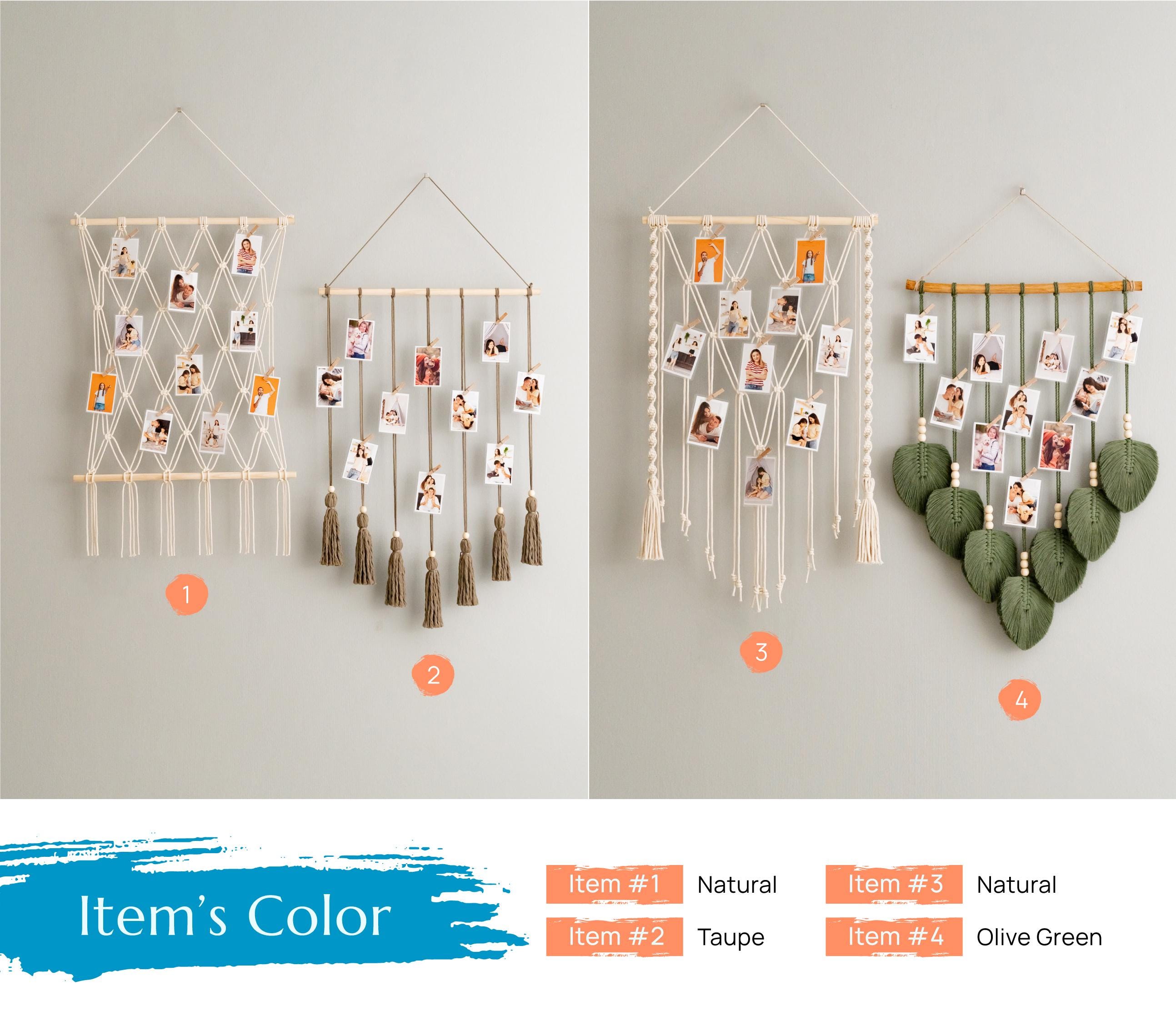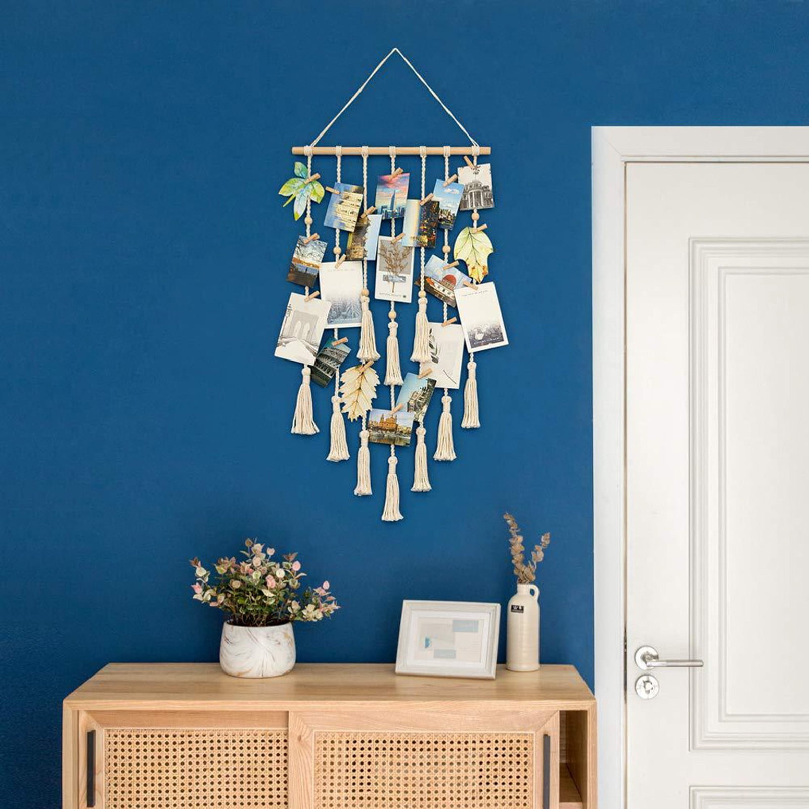 forfait comprend 1 × Suspension murale en macramé Caractéristiques -Remarque : sans clips cadre mural. Décoration murale pour Noël -Accrocher vos photos, vos images préférées et vos collections de cartes uniques avec cintre photo en macramé est pour la décoration murale en macramé. cadre photo en macramé Décoration d'image - vous pouvez également ajouter que vous aimez à l'affichage d'image mural, ce qui en fait votre décoration intérieure attrayante, décoration de maison Décoration Intérieure Bohème Zopeal Affichage Photo Suspendu Organisateur De Photo Suspendu En Décoration Murale Noël Anniversaire -Conception simple et production méticuleuse, la corde en coton est solide et ferme et ne tombe pas facilement cadre photo décoratif en macramé. Décoration de chambre - elle peut également utilisée avec des guirlandes lumineuses (non incluses) pour rendre vos murs plus et décoratifs, décoration maison Cadre photo suspendu - il peut avec art vos photos de cartes préférées, montrant vos bons souvenirs, votre amour, votre amitié, votre voyage, chaque détail de votre vie, cadres photo suspendus support photo en macramé L'affichage de photos de décoration murale en macramé est une décontractée et artistique de montrer vos photos et impressions préférées Suspension photo en macramé - France Présentoir à photos suspendu - organisateur de photos mural est adapté pour marquer vos merveilleux détails de , des photos de votre famille, de vos amis et de vos , etc. Le kit en macramé offre tout ce dont vous avez besoin pour réaliser un support mural pour photos. Il comprend 2 pièces de bâtons en bois de 40 cm, 50 mètres de corde en coton, 1 cône, 30 pinces en bois et 1 mètre de ruban