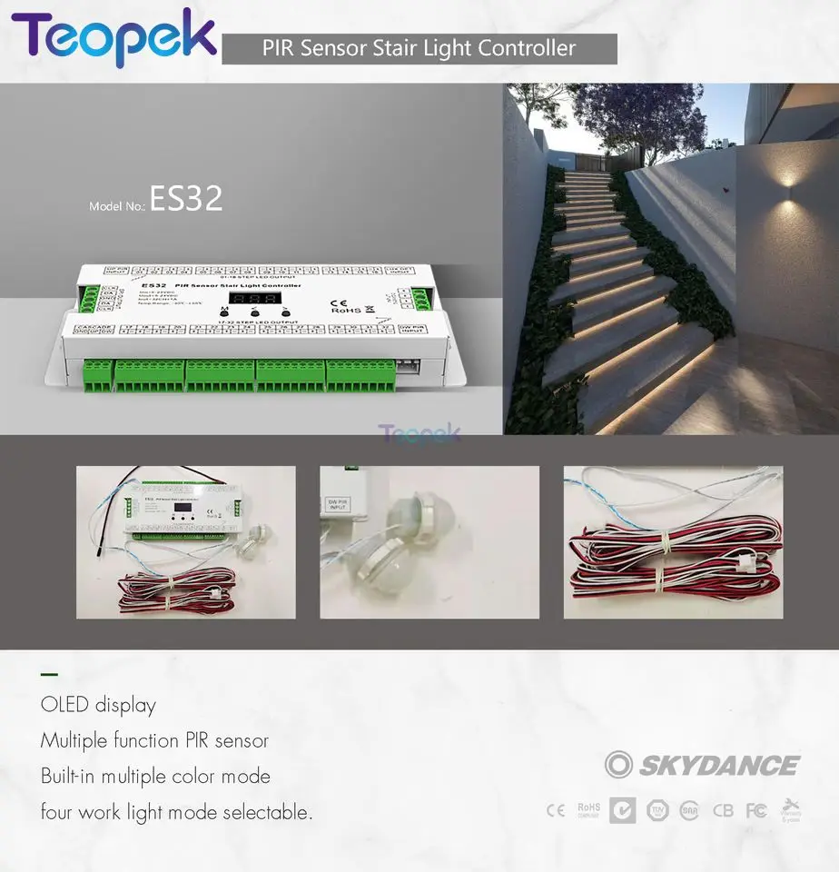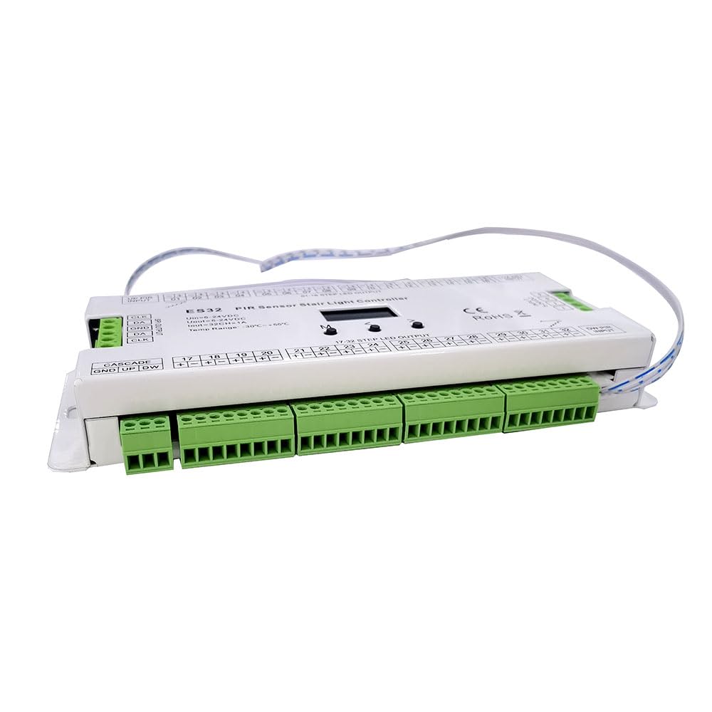 4 modes de fonctionnement sélectionnables. Note: réflexion de lumière et différents écrans peuvent causer la couleur de l'article dans un peu différente de la vraie chose. Le contrôleur d'éclairage pour escalier est équipé d'un capteur PIR hautement sensible qui détecte les mouvements humains ainsi que la lumière ambiante Contrôleur T-1000 Pixel Full Color Mode multi-couleurs intégré, vitesse et luminosité réglables de 1 à 8 niveaux. Contrôleur d'éclairage d'escalier, Contrôleur D'éclairage LED For Escaliers ES32, Capteur PIR, 32 Canaux, Couleur, 2 Canaux, Pixel RVB, Variateur De Bande LED SPI, Contrôleur De Capteur D'éclairage F Deux contrôleurs d'éclairage d'escalier peuvent être en cascade. Tout canal LED endommagé parmi les 32 canaux peut être désactivé. Commande Luminaire Escalier Automatique Rgb Contrôleur Lumière Escaliers Intérieurs, Capteur PIR - Test Et Avis 32 Canaux LED L'erreur de mesure permis est de +/- 1-3 cm. Bande LED monochrome 32 canaux prise en charge, courant max 1A par canal. Couleur: comme indiquéMatériau: plastiqueContenu du colis:1 x Contrôleur d'éclairage d'escalier1 x Capteur de lumière du jour (30 cm)2 capteurs PIR2 x Rallonges (5 m)Seul le paquet ci-dessus, les autres produits ne sont pas inclus.