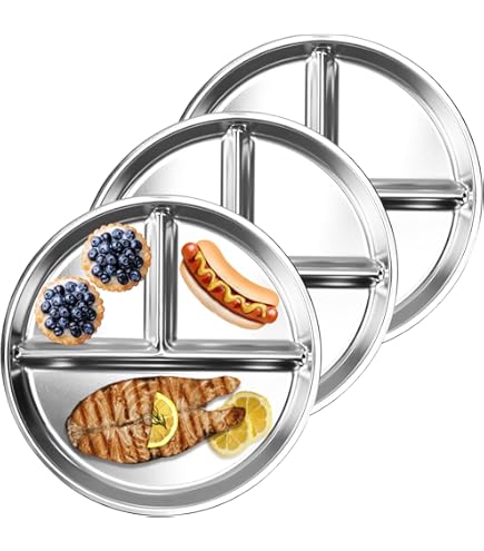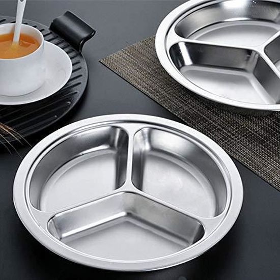 Nos assiettes compartimentées vous permettent de servir des collations saines comme des fruits et des noix, réduisant ainsi la consommation de malbouffe et aidant les jeunes enfants à développer de saines habitudes alimentaires. Prie acier inoxydable Indian Thali plat / plateau avec copartients 32c (Harish Caractéristiques : --Assiette rationnée : Une assiette rationnée avec des fruits frais, des légumes crus et des noix peut contribuer à répondre aux besoins nutritionnels des tout-petits et des préadolescents tout en limitant l'excès de malbouffe. Aide à la gestion du poids : Nos assiettes à portions contrôlées utilisent un ratio de 2:1:1 pour vous aider à équilibrer les protéines, les glucides et les lipides. Ils sont parfaits pour tous ceux qui souhaitent profiter de repas sains à l’intérieur comme à l’extérieur. Utilisation polyvalente : Ces assiettes sont idéales pour le camping, les déjeuners au travail, les pique-niques ou les dîners formels. Idéal également pour les repas de famille, les cantines scolaires et les cafétérias. Location plateau inox 45x35cm - plateau de service, plateau de service Ce design rend l'alimentation saine plus attrayante pour les enfants et les aide à développer de bonnes habitudes alimentaires. --Garde-manger polyvalent : Ce plateau peut être utilisé non seulement comme plateau-repas compartimenté classique, mais aussi comme plateau-repas d'extérieur. Favorise une alimentation saine : Nos assiettes pour enfants sont composées de trois compartiments pour servir des repas équilibrés avec des légumes, des protéines et des céréales. VAISSELLE INOX Plateau 5 compartiments Assiette Equilibre Alimentaire Adulte Assiettes Divisée En Acier Inoxydable Avec 3 Compartiments Pour Enfants Et Adultes Assiette Divisée En 3 INOX Pour Le Camping - Maison Assiettes Compartimentées Inox Acier inoxydable de haute qualité : Fabriquées en acier inoxydable alimentaire durable, ces assiettes sont solides et durables.