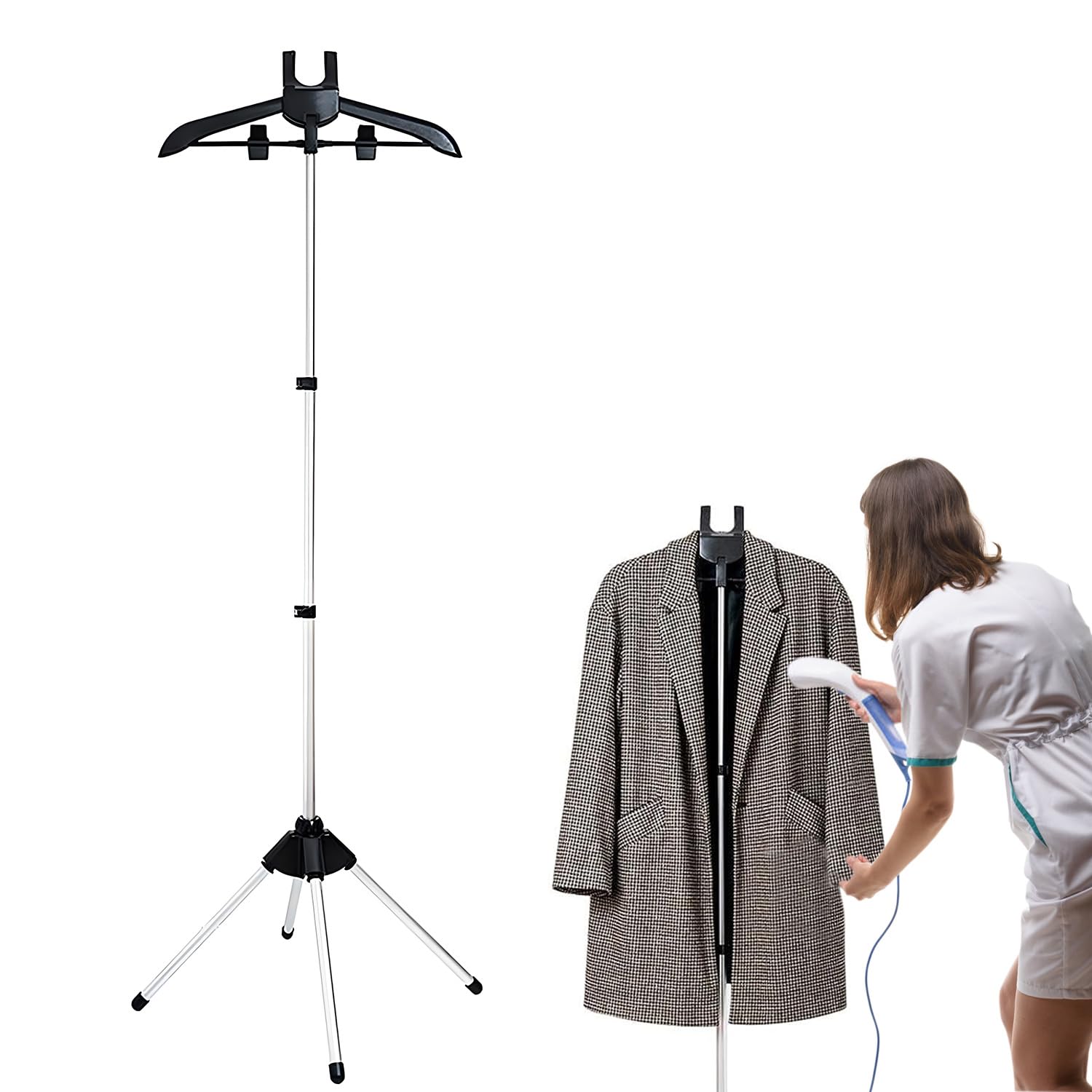 Support à vapeur portatif pour vêtements, cintre pour vêtements à la vapeur Organisez votre garde-robe en toute simplicité grâce à notre cintre à vapeur sur pied ! Présentation du produit Cintre pour Vêtements à La Vapeur avec 160cm Perche Télescopique Support de Repassage à Vapeur en Tissu Pliable Support A410 [Matériau de Haute Qualité]Cette grille de repassage à vapeur est fabriquée en alliage d'aluminium épaissi, qui peut résister à des objets lourds et empêcher la flexion Avec une forte capacité de charge, il peut contenir plusieurs manteaux ou vêtements. Des usines aux maisons, des magasins aux hôtels et même en déplacement, cet accessoire polyvalent peut facilement manipuler divers tissus. Empêchez vos vêtements de tomber tout en évitant la déformation. Defroisseur Vetement Support De Repassage U00c0 Vapeur, Support U00c0 Vapeur Pour Vu00eatements, Du00e9froisseur U00c0 Vapeur Portable, Tru00e9pied Tu00e9lescopique, Cintre Pour Repassage U00c0 La Vapeur, U00c9tendoir U00c0 Linge Pour Vu00eatements La longueur réglable et la fonction sans démontage le rendent parfait pour n'importe quel espace. ☽Facile à ranger : gardez votre espace organisé avec notre support à vapeur portable. Pesant 0,7 kg/2,2 lb et ne nécessitant aucun démontage, il peut être facilement plié et rangé sans prendre beaucoup de place. Et la rotation horizontale à 360 degrés offre un accès pratique à tous vos vêtements. Cintre À Vêtements, Égouttoir À Linge, Porte-Vapeur À Main, Support De Liste: Cintre pour machine à repasser à main x 1 pièces Gants de fer x 1 pièces Rond bleu et blanc Support de vêtements pour table à repasser T1, mini...