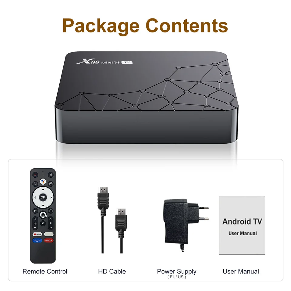 265 / VP9 jusqu'à 8k @ 30fps H. Le processeur RK3518 Quad-Core 64 bits Cortex-A53 et le chipset Mali 450 offrent une puissance de traitement d'image exceptionnelle et des vitesses de réponse instantanées pour ouvrir les applications et naviguer entre les interfaces 264 / AVC BP / MP / HP Profil @ Level 5., 1; H. 265 optimisent la bande passante, assurant une lecture vidéo fluide sans latence. 📺【2 GO DE RAM + 16 GO DE ROM (EXTENSIBLE)】 Doté de 2 Go de RAM haute vitesse et de 16 Go de stockage interne, ce box assure une exécution fluide du système sans ralentissements. Tv Box Hdr10 Bluetooth 5.0 Q Plus Android 10.0 TV Box 2Go RAM 16Go ROM H616 Quad-Core Cortex-A53 Boitier Iptv 264 / AVC MVC; Jusqu'à 4kx2k @ 60fps H. 📺【TÉLÉCOMMANDE VOCALE BLUETOOTH】 Le TV box 2025 inclut une télécommande vocale Bluetooth pour activer l'assistant virtuel par voix. Quatre boutons raccourcis permettent d'accéder directement à vos chaînes préférées, et vous pouvez ajouter vos contenus favoris au bureau en un clic. 265 / HEVC Main / Main10 Profil @ Level 5., 1 High-Tier; Jusqu'à 4kx2k @ 60fps VP9 p2 4kx2k @ 60fps avs2 4kx2k @ 60fps MPEG-1, profil principal, jusqu'à 1080p @ 60fps MPEG-2, sp @ ml, mp @ hl, jusqu'à 1080p @ 60fps MPEG-4, profil asp @ niveau 5, jusqu'à 1080p @ 60fps @ 60fps Format de support de support: AVI / TS / VOB / MKV / MOV / ISO / WMV / ASF / FLV / DAT / MPG / MPEG Support Format de musique: MP3 / WMA / AAC / WAV / OGG / DDP / HD / FLAC / APE Soutenir le format photo: HD JPEG / BMP / GIF / PNG / TIFF Système de fichiers HDD: FAT16 / FAT32 / NTFS OSD Type de langues: anglais / français / allemand / espagnol / italien / etc. EJ.life Lecteur multimédia 4K Android 10.0 2Go RAM 16Go ROM WiFi 4K Le processeur RK3518 Quad-Core 64 bits Cortex-A53 et le chipset Mali 450 offrent une puissance de traitement d'image exceptionnelle et des vitesses de réponse instantanées pour ouvrir les applications et naviguer entre les interfaces., 📺【DOUBLE Wi-Fi 2., 4/5., 0GHz, ETHERNET 100M & BT 5., 0】 Le X14 MINI Android box prend en charge la connexion Internet 100M et le Double Wi-Fi 2., 4/5., 0GHz, garantissant une connexion stable pour diffuser des vidéos HD sans interruption., Le Bluetooth 5., 0 permet de connecter facilement des périphériques sans fil (claviers, souris, enceintes)., 📺【4K/3D/HDR10/H., 265/HDMI 2., 0】 Ce Android 14., 0 TV Box supporte la résolution 4K avec technologie HDR10, offrant des images stéréoscopiques et ultra-nétte pour films, jeux et sports en direct., L'interface HDMI 2., 0 et le codage H. [SYSTÈME ANDROID 14.0 ULTRA RÉCENT] Le X14 MINI TV Box est doté du dernier système Android 14.0, offrant une compatibilité optimale avec les applications Android