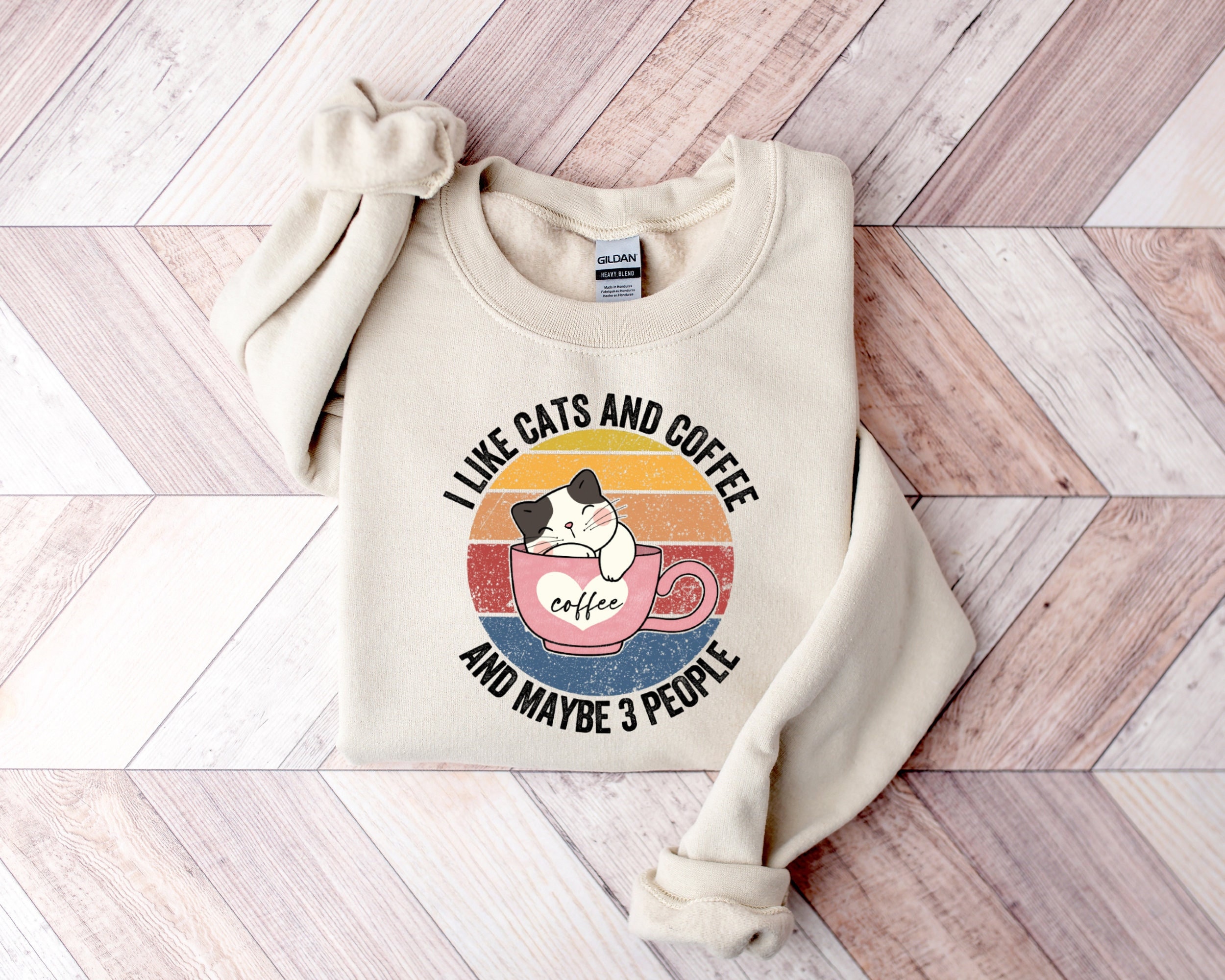I Like Cats And Coffee And Maybe 3 People funny gifts for cats and coffee lover, cats and coffee, funny cats and coffee lover gifts Sweat Chat Café Humour MAURA LIYUZA "I Like Cats And Coffee And Maybe 3 People" Yazılı Kahve İçen Cool Sweat Café Et Chat I'm A Cats And Coffee Kind Of Girl Sweatshirt White Woman Cant Survive On Coffee Alone She Needs A Cat Kitten Women Hoodie | CA