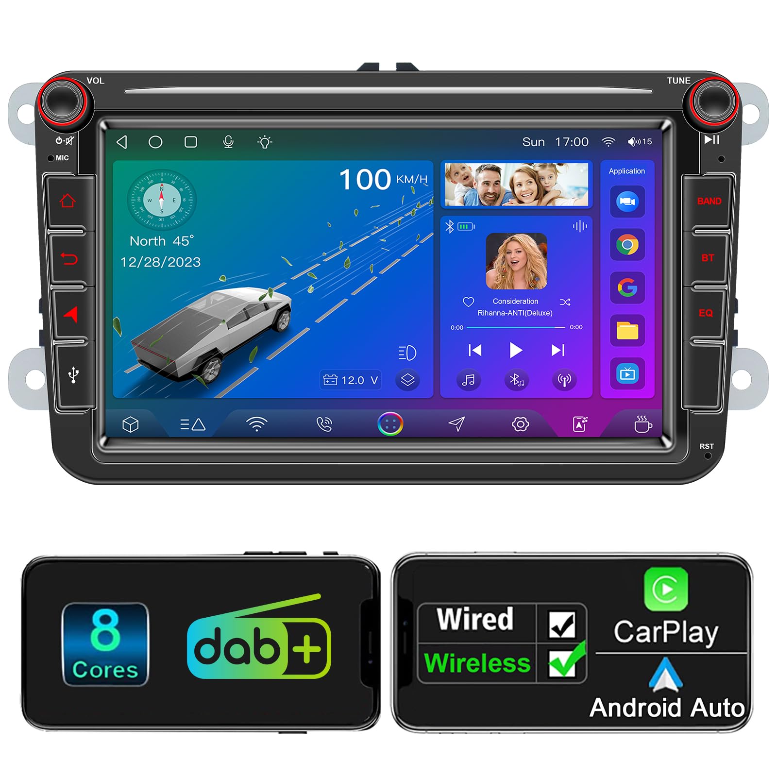 GOHHDL Radio Carplay pour VW Tiguan ------ La radio stéréo tactile Carplay 2Din est compatible avec les modèles VW Tiguan 2014, 2015 et 2016. Avec le dernier système Android 15 et une mémoire vive de 6 Go une mémoire de stockage de 128 Go pour une utilisation fluide Prise en charge du tuner radio FM/RDS, 18 stations préréglées. Android Auto Wireless CAMECHO [Snapdragon 8-Core] Android 15 Autoradio Pour VW Tiguan (2010-2017), 4+64G Navi Wireless Carplay DSP, 9 Ecran Tactile Radio WiFi FM/RDS Bluetooth 5.1 MirrorLink+Mic+Camu00e9ra De Recul Car Play GOHHDL Radio Carplay pour VW Tiguan ------ La radio stéréo tactile Carplay 2Din est compatible avec les modèles VW Tiguan 2014, 2015 et 2016., Avec le dernier système Android 15 et une mémoire vive de 6 Go + une mémoire de stockage de 128 Go pour une utilisation fluide SWC et caméra de recul AHD ------ Radio Bluetooth Carplay 2 Din pour VW Tiguan 2016 avec caméra de recul. Lorsque le véhicule recule, l'écran de la radio pour VW Tiguan 2014 affiche automatiquement l'image de recul. Autoradio GPS - SANAG - A798 - 8 Cœurs - Android 12 - Écran 8 pouces... Más allá Generalmente lanza autoradio vw tiguan 2015 A bordo hilo Marinero La fonction Mirror Link permet de diffuser le contenu de votre téléphone sur l'autoradio 9 pouces pour VW Tiguan 2014 Une variété d'effets sonores EQ et de sélection de scènes, pour écouter chaque scène musicale Carplay & Android Auto & Mirror Link ------ Connectez les fonctions CarPlay et Android Auto via USB et WiFi pour passer des appels, naviguer, écouter de la musique et plus encore avec l'assistant vocal.