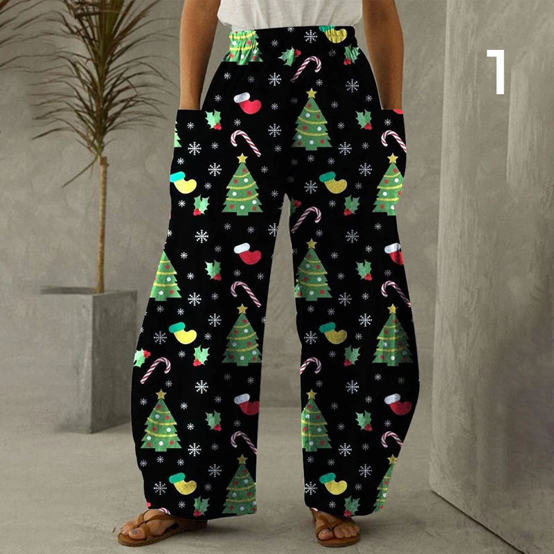 Pantalon décontracté en peluche de Noël pour femmes, motif de cerfs et de flocons de neige, en fibre de polyester, convient pour les vacances, la maison, l'école, l'automne/l'hiver Pantalon estival avec ceinture à nouer - noir/beige galet imprimé graphique Pantalon Fete Femme Pantalon Femme Leggings NoëL Pour Sport Femme Imprimé PèRe NoëL Taille Haute Pantalon ContrôLe Du Ventre Coupe AjustéE Collants Gym Doux Confort Slim Grande Taille Multicolore W20 Tenue De Fête Femme