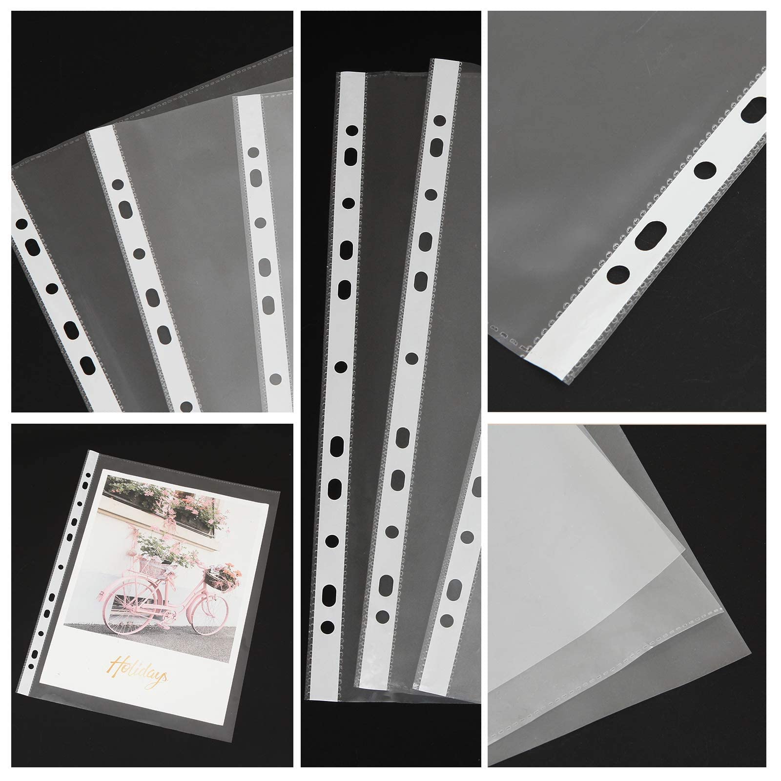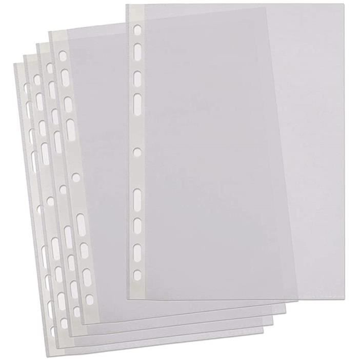 Le film transparent permet une vue parfaite des documents sans avoir à les retirer du film transparent A4 et assure ainsi un accès rapide et une bonne lisibilité Contenu de l'emballage : Lot de 150 pochettes perforées transparentes A4., Lot de 150 pochettes perforées A4 transparentes par paquet, film transparent solide de qualité supérieure, épaisseur du film 0,06 mm (60 my), chaque pochette transparente A4 mesure 235 x 305 mm, convient pour les papiers, certificats et certificats au format A4 Pochettes perforées A4 pour cartes à collectionner Las fundas transparentes extra gruesas A4 están hechas de plástico duradero, impermeable y resistente a desgarros. El material es más grueso y estable que otras fundas para documentos en el mercado 11 trous pour classeurs : nos pochettes à documents disposent de 11 trous pour classeurs, de sorte que les pochettes peuvent contenir tous les classeurs et dossiers à 2/3/4 anneaux. Pochettes perforées renforcées x100 - A4 - Super U, Hyper U, U Express Polyvalent : les pochettes perforées A4 transparentes sont un outil utile pour organiser et classer des documents dans des dossiers, au bureau à domicile, à l'école, au collège, à l'université et dans d'autres environnements. Grâce à son ouverture sur le dessus, il est également facile à utiliser Oungy Lot de 150 pochettes perforées A4 transparentes 60 microns extra épaisses A4 transparentes pour protéger le papier, les fichiers, les pochettes format A4, idéales pour classeurs à anneaux en destockage et Transparence de haute qualité : grâce au film plastique (transparent), les documents sont faciles à reconnaître. Le matériau est plus épais et plus stable que les autres porte-documents sur le marché., 2., Il est possible de classer, de trier et de retirer facilement dans un classeur, un classeur ou un classeur à anneaux., 3., Les pochettes perforées à surface lisse garantissent un aspect élégant et de qualité supérieure grâce à leur brillance particulière., 4., Avec les films transparents A4 transparents, les brochures, les certificats, les cartes d'identité et d'autres documents ont un cadre approprié et surtout protecteur. Épaisseur : 0,06 mm (60 my) Couleur : transparent.