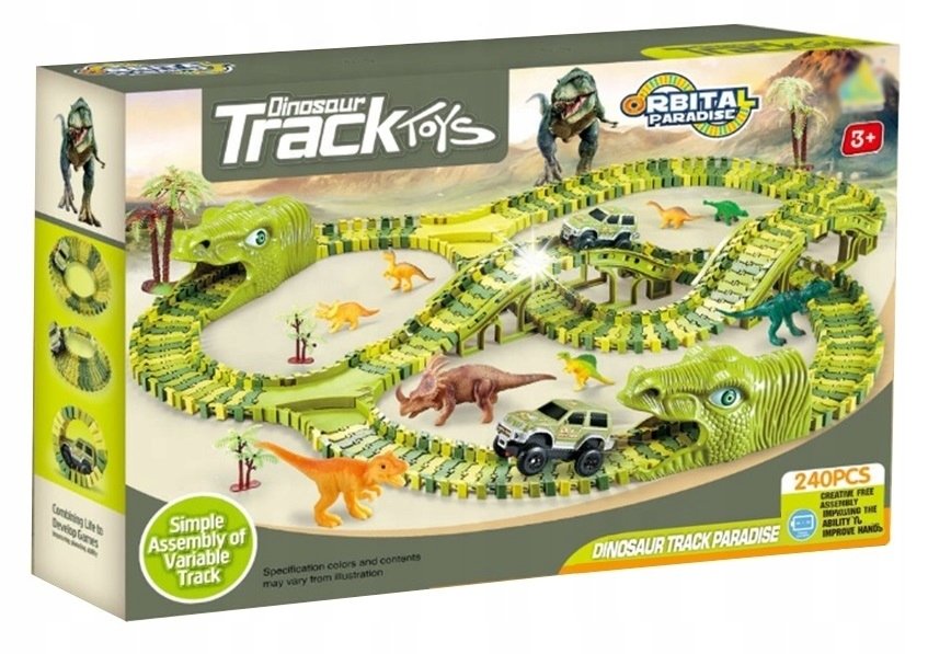 Dinausaures Circuit Voiture Enfant DIY Avec LED - Jouet Garçon Dinosaure Action Lot De 174 Jouets Dinosaures - Piste De Train Flexible Avec 8 Figurines De Dinosaures, 2 Voitures Garage Voiture Enfants Découvrez le plaisir avec un méga circuit de course XXXL sur le thème des dinosaures, composé de 240 pièces. Assemblez une piste modulable, traversez le tunnel-dinosaure et profitez du grand format de piste adapté aux enfants Mega Transporteur T-Rex Camion City Transformable avec Piste de Course...