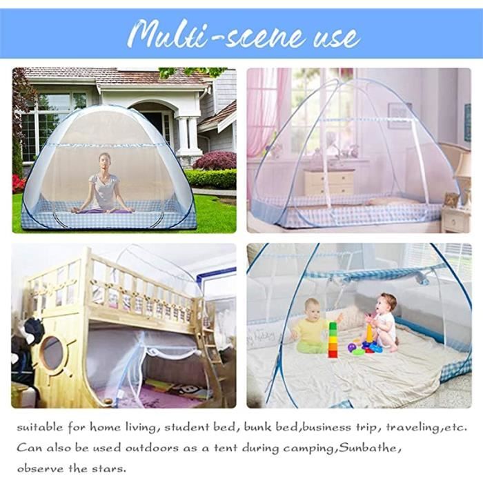 Moustiquaire Lit Bébé avec Support Une solution adaptée aux besoins des familles actives soucieuses du bien-être de leurs . Tente Lit Bébé Moustiquaire Moustiquaire Pour Lit De Bébé, Moustiquaire Avec Matelas Et Oreiller Moustiquaire Pour Berceau De Bebe Tente Anti Moustiques Protection Anti Moustiques Bébé Tente de Lit Bébé Conçue en mettant l'accent sur la sécurité des tout-petits, cette tente de lit pour bébé offre un environnement sécurisé pour les dans la chambre d'enfant ou la chambre à coucher. Sérénités garantie : Conception avec mécanisme de fermeture silencieux et cadre de sécurité anti-fuite, favorisant l'autonomie du sommeil grâce à son système anti-grimpe innovant qui sécurise l'espace de couchage Confort d'utilisation : Design pratique avec système double sécurité intégrant zip automatique et boucles durables pour éliminer tout risque d'ouverture accidentelle Moustiquaire de Lit Pliable Pop Up Grand Moustiquaire Tente en Forme de... Tente Moustiquaire,Moustiquaire Voyage,Moustiquaire De Lit Pliable,Lit Son design en canopée pop-up est à la fois fonctionnel et pratique, une protection fiable là où votre enfant dort. En raison de différentes mesures manuelles, veuillez permettre une différence de taille de 1 à 2 cm. Le tissu en maille respirante améliore la circulation de l'air, ce qui la rend idéale pour une utilisation à la maison ou en voyage.