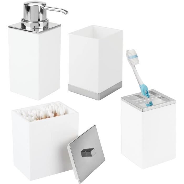 Chaque élément de cet ensemble a été soigneusement conçu pour s'adapter à différents Porte-brosse à dents : la solution idéale pour ranger vos brosses à dents de manière hygiénique et garder votre salle de bain propre. Offre Distributeur savon Gobelet porte-brosse à dents et savon Brosse à dents et dentifrice | Cadeau d’affaires | Gobelet à brosse à... Haute qualité : chaque élément de l'ensemble est soigneusement conçu pour garantir durabilité et fonctionnalité. Set d'accessoires de salle de bains : porte-savon, distributeur, porte- brosses à dents en verre Diversité esthétique : le design moderne et élégant s'adapte à différents styles de décoration et crée une atmosphère harmonieuse et harmonieuse dans n'importe quelle pièce. Nettoyage facile : les surfaces lisses permettent un nettoyage et un entretien faciles, ce qui vous permet d'avoir plus de temps pour les choses qui sont importantes pour vous. Porte Savon Brosse WC Poubelle Ensemble D'accessoires De Salle De Bain, 8 Pièces De Salle De Bain, Accessoires De Salle De Bain Blancs, Poubelle De Salle De Bain Et Brosse WC Comprenant Un Porte-brosse à Dents, Un Décoration Salle Bain Complète Poubelle : discrète mais fonctionnelle, elle permet de garder votre salle de bain propre et bien rangée. Donnez à votre salle de bain une nouvelle dimension d'élégance avec notre ensemble complet de salle de bain composé de cinq éléments indispensables. Conçu pour être fonctionnel et stylé, cet ensemble facilite non seulement les routines quotidiennes, mais embellit également votre salle de bain.