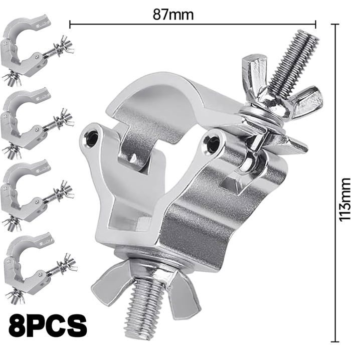 Pince pour éclairage de scène : les crochets d'éclairage robustes peuvent les lampes fermement et de stable, peuvent les utiliser , pinces d'éclairage pour scène Cabilock Lot de 4 Pinces de Fixation en Alliage d'Aluminium Anodisé Noir pour Éclairage de Scène Crochets O Robustes Supportant 100 Kg Compatibles Tubes 48-51 MM pour Projecteurs forfait comprend Pinces Caractéristiques - Taille : 11,30 x 8,70 x 3,00 cm/4,44 x 3,42 x 1,18 pouces, crochet pour pinces d'éclairage de scène - Couleur : Pince lumineuse en noir -Matériau : pinces lumineuses en alliage d'aluminium -Informations sur produit : Crochet pour lampe de scène - Pince à treillis en forme de O pour plus de sécurité et de stabilité, installation ou retrait rapide et facile des pinces lumineuses métalliques. Pinces d'éclairage dj : adaptées aux lampes de scène, aux lampes suspendues, aux lampes led, aux lampes à tête mobile et plus , support de pince en aluminium Projecteur de scène à pince : la fabrication garantit praticité et , adapté à diverses occasions, pince d'éclairage de scène Pince pour éclairage par : ces pinces à treillis peuvent contenir de nombreuses lampes parfaitement et de stable car ont une conception réglable, pinces à treillis pour lampes de scène -Cette pince de lampe de scène est fabriquée en alliage d'aluminium de , pas facile à rouiller, avec des clips de lumière DJ de haute . DJ O-Clamp Crochets de Fixation Clamp en Aluminium de Suspension avec Besoin de pinces résistantes et durables pour vos lampes de scène ? Si oui, ne cherchez plus ! -Convient pour spot à tête mobile, de scène à LED, à effet LED, les luminaires DJ, etc. Crochets pour éclairage de scène. 4 crochets en alliage d'aluminium Seul le contenu de l'emballage ci-dessus, les autres produits ne sont pas inclus. Remarque : la réflexion de la lumière et les différents affichages peuvent rendre la couleur de l'article dans l'image légèrement différente de la réalité Support Tube Aluminium Pour LED Kit Crochet Lumineux Crochets éclairage Scène Aluminium - Lot 10 Pinces Grille Spectacle Crochet éclairage Scène -Largement utilisé pour la lampe de scène fixe, peut supporter un poids de 100 kg, pour utiliser des pinces d'éclairage DJ.