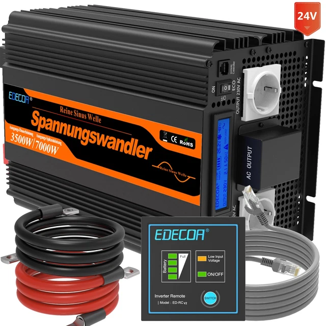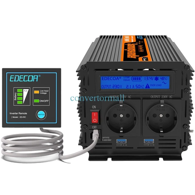 Haute sécurité : l'onduleur EDECOA est conçu avec des fonctions de sécurité avancées, l'onduleur offre des normes de sécurité élevées et peut empêcher la surcharge, le court-circuit et la surchauffe; Nous avons également conçu l'isolation galvanique pour assurer la sécurité; La sécurité est la chose la plus importante pour nous Conversion de puissance multifonctionnelle: L'onduleur à onde sinusoïdale EDECOA 3000W modifié offre une conversion de puissance stable, une puissance de sortie continue réelle de 3000 W peut faire fonctionner plusieurs appareils ménagers en même temps, et l'efficacité de conversion d'énergie est supérieure à 92%, adaptée aux camping-cars, bateaux, maisons d'urgence Confort accru: les onduleurs EDECOA équipés d'une télécommande et d'un design adaptatif offrent une commodité inégalée dans une variété de scénarios d'utilisation; Idéal pour une utilisation à domicile et en camping-car avec une excellente manipulation de charge et une compatibilité des appareils EDECOA Onduleur solaire 3000 W 24 V à onde sinusoïdale pure 3000 W DC 24 V vers 120 V AC avec 3 prises et bornier AC Puissant et fiable : l'onduleur EDECOA avec une puissance de sortie continue réelle de 3000 W, cet onduleur peut prendre en charge plusieurs appareils simultanément, offrant des performances fiables pour différents besoins électriques Onduleur Sinusoïdal Purepower - 24V - 230VAC - 2000W - connexion USB Onduleur Avec Télécommande USB Convertisseur 12V 230V EDECOA Onduleur 3000W/6000W - 12V/230V - Sinusoïdal Modifié - USB/Type-C - Télécommande Convertisseur Puissance USB-C Onduleur Avec Télécommande Et USB Type-C EDECOA inversor Onda Pura 24v 220v 1200w convertidor de tensión Incluye...