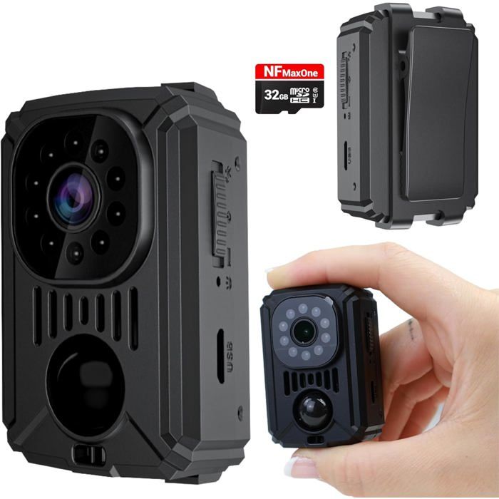 Idéale pour la maison, le garage, l’entrepôt ou même en déplacement. MINI CAMERA DE SURVEILLANCE IP SANS FIL 1 Mode Wi-Fi 2 Mode Point d’accès 3 Mode Hors Ligne 【Détection de Mouvement Puissante】 Cette caméra sans Wi-Fi détecte automatiquement les mouvements et envoie des notifications sur votre téléphone (mode Wi-Fi), pour que vous restiez informé à tout moment et où que vous soyez. Parfaite pour l’intérieur, l’extérieur, le camping, les voyages, et bien plus encore. 【Applications Multiples】 Cette camera de surveillance sans internet est idéale pour une utilisation partout : à la maison, en cabane, dans les garages, en zones reculées ou sans accès réseau. Elle fonctionne également pendant la charge — dites adieu aux soucis d’autonomie. Caméra Espion WiFi Mini 1080P Sanprov | Espion Micro Installez-la facilement partout — sans perçage nécessaire. 【Vidéo Ultra HD 4K D’une Clarté Cristalline】 Cette mini camera espion sans fil capture chaque détail avec une résolution 4K impressionnante et un large champ de vision de 150°, couvrant une plus grande zone avec moins d’angles morts pour une sécurité renforcée. 【4 Options De Montage Intelligentes】 Placez-la librement sur un bureau, ou fixez-la aux murs, plafonds ou surfaces planes grâce au support réglable inclus ou aux plaques adhésives puissantes. Caméra Surveillance Sans Fil Extérieure, Caméra Solaire Wifi Autonome... Caméra Discrète Vision Nocturne Caméra Espion - 64GB Mini Caméra Espion-1080P Caméra Cachée-Mini Caméra, Opération à Un Bouton, Boucle Et Enregistrement Par Détection De Mouvement, Intérieur/Extérieur(Sans WiFi, Incluse TF-Carte Détection Mouvement Notifications 【Carte TF Intégrée De 64 Go】 Cette mini camera espion est fournie avec une mémoire intégrée de 64 Go, vous permettant d’enregistrer des vidéos dès la sortie de la boîte, sans achat supplémentaire.