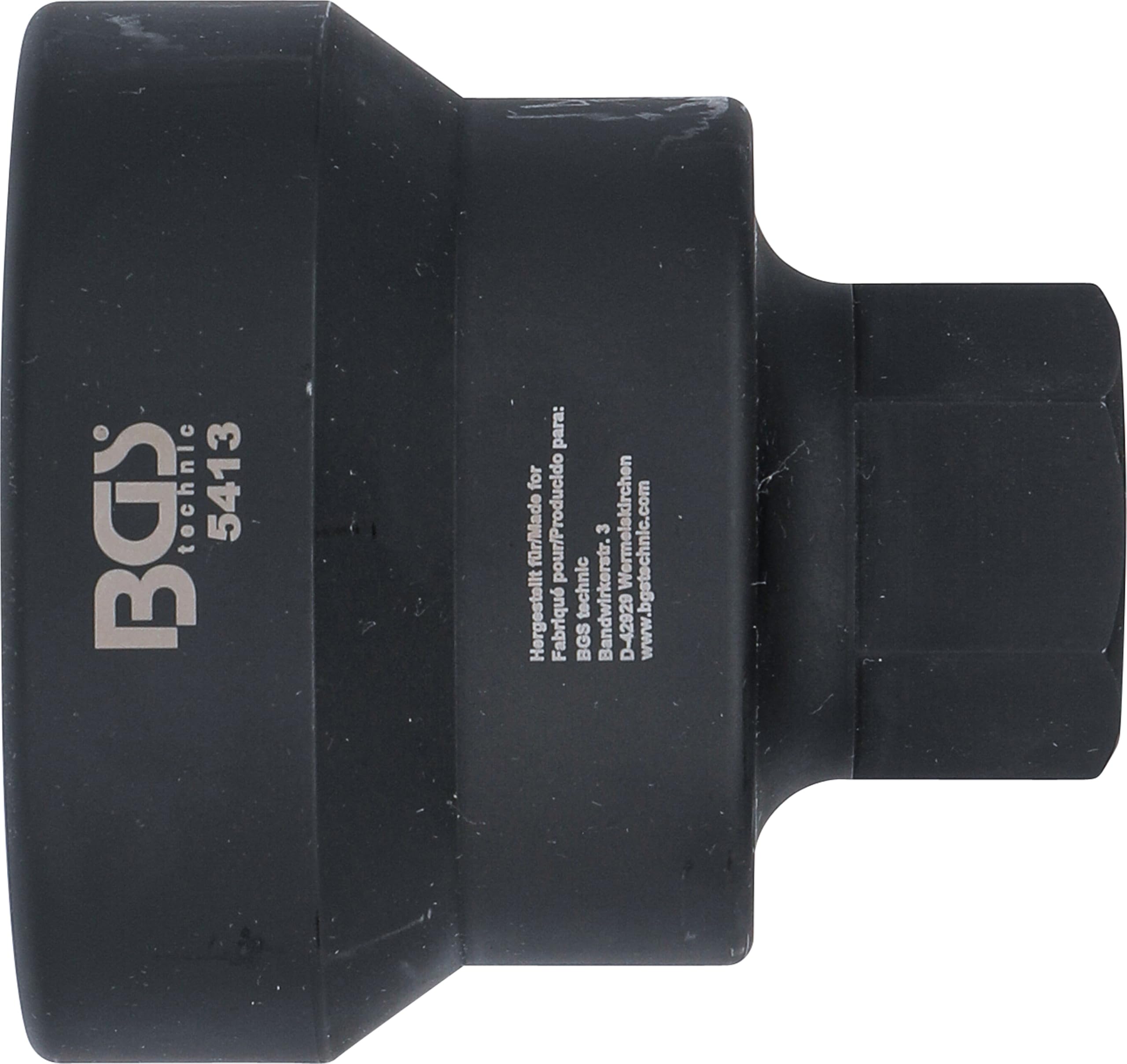 Profil de transmission : 8 pans | Empreinte : Carré femelle | Taille de l’empreinte, métrique : 20 mm | Taille du profil, impérial : 3/4 | Dimension : 100 mm | Matière : Acier (C45) | Traitement de surface : Phosphaté Clé Moyeu Scania BGS Clé Pour écrous De Moyeux De L'essieu Arrière, 8 Pans Pour Scania Sw 100 6980 Référence Sw 100 6980 Traitement de surface : Phosphaté Pour desserrer/serrer les écrous de fixation des moyeux d’essieux arrière Profil de transmission : 8 pans, Empreinte : Carré femelle Clé à moyeux et écrous d'essieux 8 pans 115 mm pour Volvo Taille de l’empreinte, métrique : 20 mm Douille 3/4 chocs 8 pans pour écrous moyeux pl 95mm Taille du profil, impérial : 3/4, Dimension : 100 mm Convient pour visseuse manuelle et clé à choc