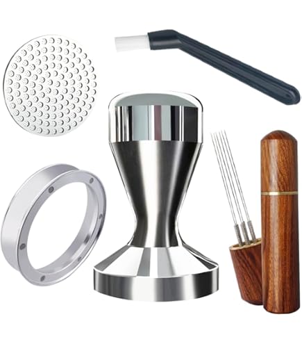 La poignée et la base sont en alliage d'aluminium, la poignée est ergonomique et tient bien dans la main. 【Ensemble d'accessoires de café parfait】: cet ensemble comprend un tampon à grains en spirale de 58 mm, 8 outils à expresso wdt, un tapis de tampon et 8 aiguilles de poudre de tissu pour le remplacement. Tamper Set, Accessoires Café Comprennent 58mm Tamper, 8 Aiguilles Espresso Wdt Tool avec 8 Aiguilles de rechange, Tamper Matte,espresso Accessoires pour machine espresso, Accessoires Barista This Wdt tool optimizes extraction by reducing channels and splashes, for a smoother and tastier espresso. Easy to use and maintain, it integrates perfectly with your barista coffee machine and other coffee machine accessories. Ideal for detail-conscious coffee lovers, it allows you to perfect your preparation technique at home or at work 8 aiguilles interchangeables en acier inoxydable assurent une longue durée de vie Kit Barista Cappuccino Kit Barista 5 Accessoires Expresso - Outil WDT 8 Broches, Entonnoir Magnétique, Tamper 51mm Outils Café Professionnels 【Tapis à café de haute qualité】: Cet ensemble est livré avec un tapis de tampon spécial qui offre la protection la plus douce pour les outils à café tels que la presse à poudre et la verseuse filtrante, etc. Cela garantit une extraction uniforme et assure un excellent café corsé. Kit Accessoires Café Tamper Set, Accessoires Café Comprennent 58mm Tamper, 8 Tampon Café 58mm 【Outil à expresso fin 8 aiguilles Wdt Tool】: les accessoires de porte-filtre sont composés de 8 aiguilles fines en acier inoxydable, sûres et pratiques pour répartir uniformément votre poudre de café. Avec son design unique en spirale, ce tampon à café magnifiquement conçu de 58 mm assure le goût parfait à chacune de vos extractions. L'échelle claire du tamper vous permet d'obtenir la bonne quantité de café à chaque préparation du café.