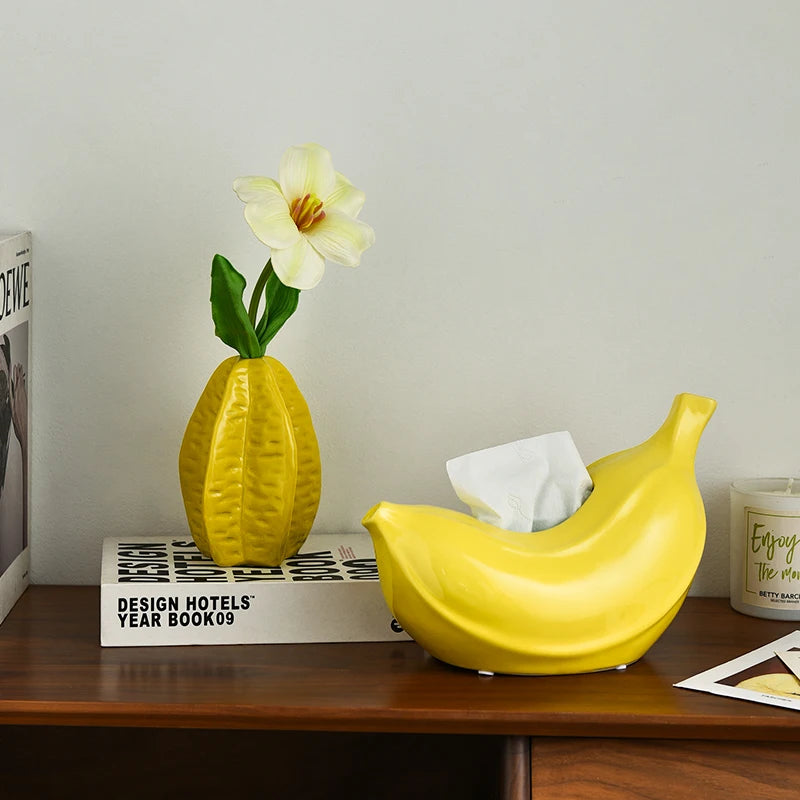 Design banane ludique : dispose d'un corps en céramique jaune vif en forme de banane, apportant de l'humour et une touche artistique moderne à votre salon ou salle à manger. Matériau : céramique., Poids : 1000 g. Fonctionnel et décoratif : mesure 26 x 13 x 18 cm, assez grand pour contenir des mouchoirs de taille standard tout en servant de centre de table accrocheur. Couverture de boîte à mouchoirs en forme de pain, porte-mouchoir mignon Fente facile d'accès : la fente supérieure assure une distribution rapide et un remplissage pratique, compatible avec le papier de soie plié ou les paquets de serviettes. Corbeille à fruit banane jaune céramique 13x30cm - Jardiland Boîte à Mouchoirs Jaune 26x13x18 Cm Distributeur De Mouchoirs En Forme De Banane, Couvercle De Boîte à Déco Cuisine Salon Originale Boîte pour Mouchoirs, Forme Européenne Retro Livre Tissu Boîte en Bois...