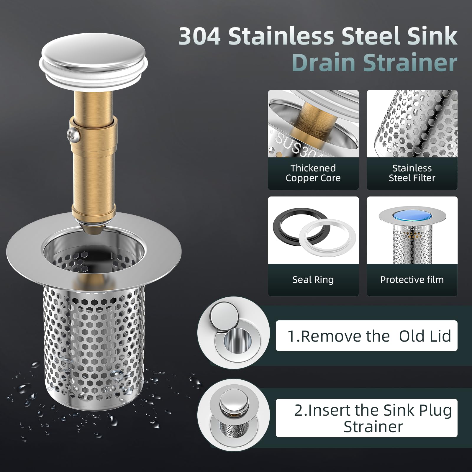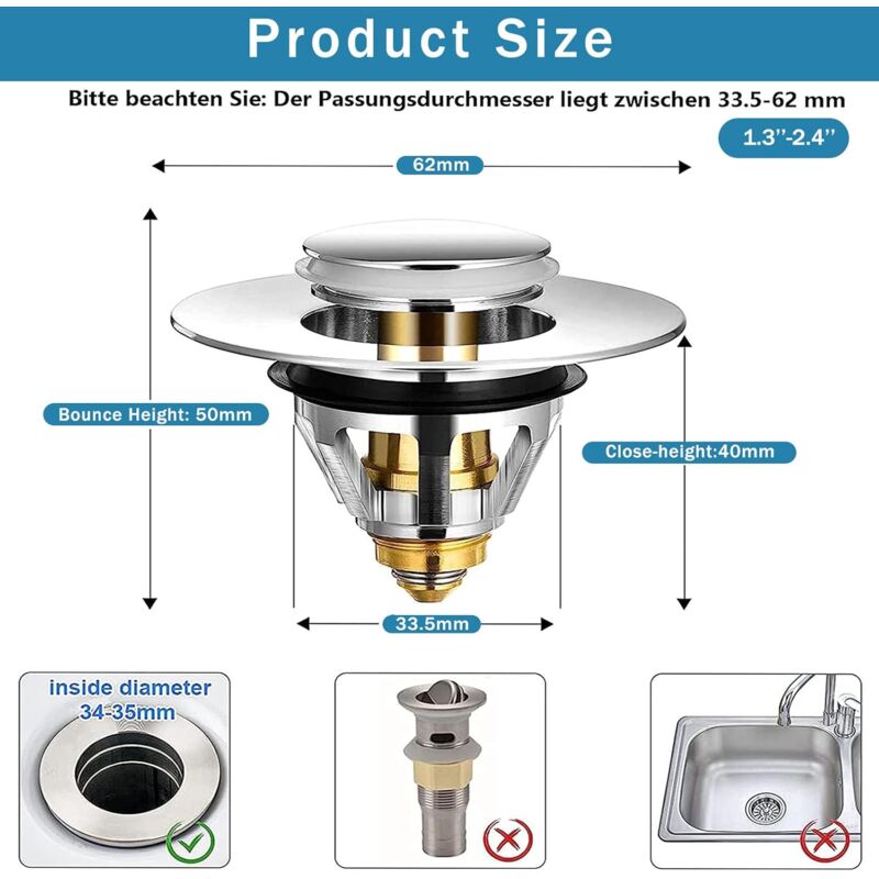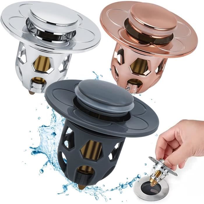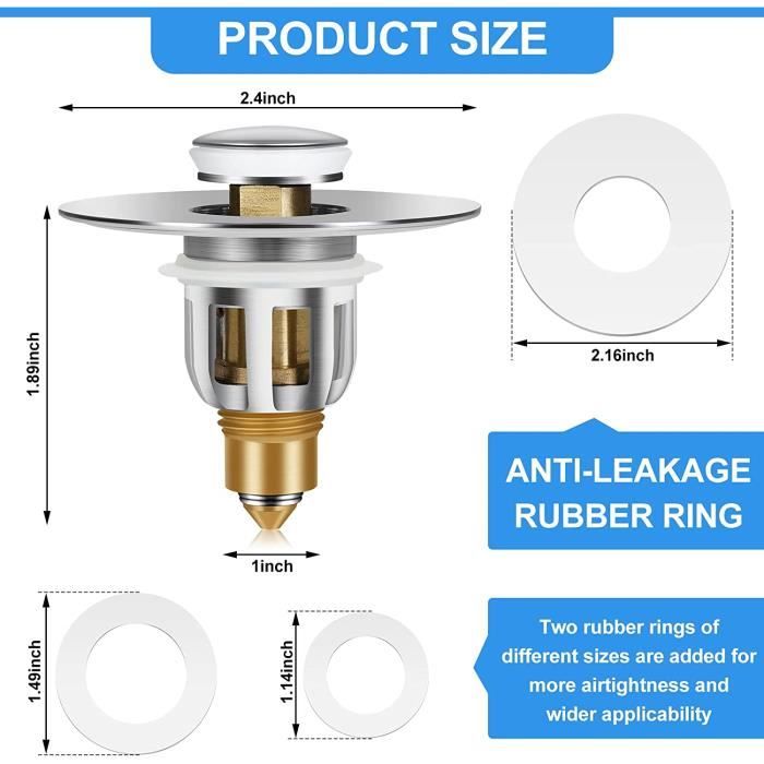 Le bouchon de vidange pop-up d'évier est facile à installer]Le bouchon de vidange pop-up d'évier a une structure simple et ne nécessite aucun outil, il suffit de retirer l'ancien et de l'insérer Système de filtration à 3 niveaux : (1) Le filet de surface capture les grosses saletés → (2) La cartouche filtre les petites particules → (3) Le joint en silicone scelle complètement le tuyau. Filtre évier Anti Cheveux 2 Pièces Bonde Lavabo Universel Pop-Up, Bouchon Lavabo Salle De Bain, Bouchon Evier Cuisine (25-46mm), Filtre De Vidange Anti-Bloqué Et Anti-Clogging,Flitre Cheveux Anti-Odeur Pour Trous De Drainage Bouchon Baignoire Ajustement parfait pour les drains standard - 5,5 x 5 x 3 cm - Taille compacte spécialement conçue de 5,5 x 5 x 3 cm - Convient à la plupart des canalisations de cuisine/salle de bain (tuyaux de 3 à 4 pouces) sans modification. Passe au lave-vaisselle pour un entretien facile. 【Service】: si vous avez des questions sur nos produits ou si vous recevez un produit défectueux, veuillez nous faire savoir, nous vous donnerons une réponse dans les 24 heures Pop Up Bouchon Lavabo,Xiuyer Bouchon d'évier Type Poussoir, Bouchon de Lavabo, Flitre de Vidange... 2 Pièces Bonde De Lavabo Universel Pop Up Bouchon Baignoire Avec Flitre De Vidange Anti Bloque 84725216 Les matériaux de qualité supérieure assurent une longue durée de vie même dans des environnements humides. Les micro-trous de 0,3 mm bloquent efficacement les cheveux/la nourriture. Acier inoxydable chirurgical 304 - Mieux que les alternatives en plastique - Ne rouille pas, ne se déforme pas et n'abrite pas de bactéries.